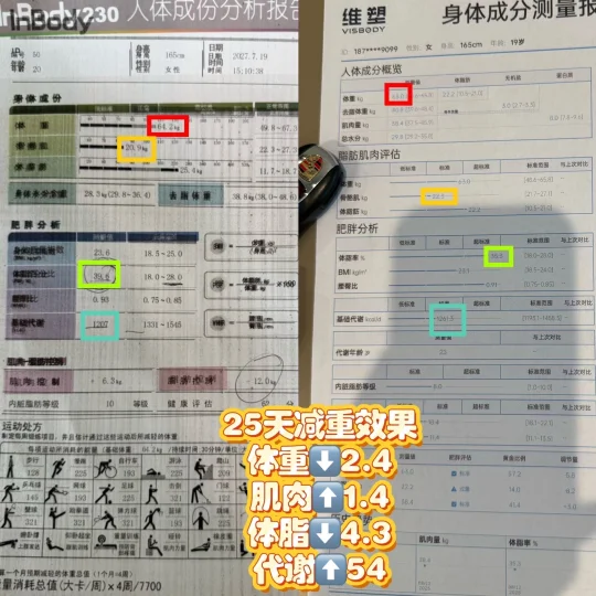 (体重⬇️2.4肌肉⬆️1.4体脂⬇️4.3代谢⬆️54)