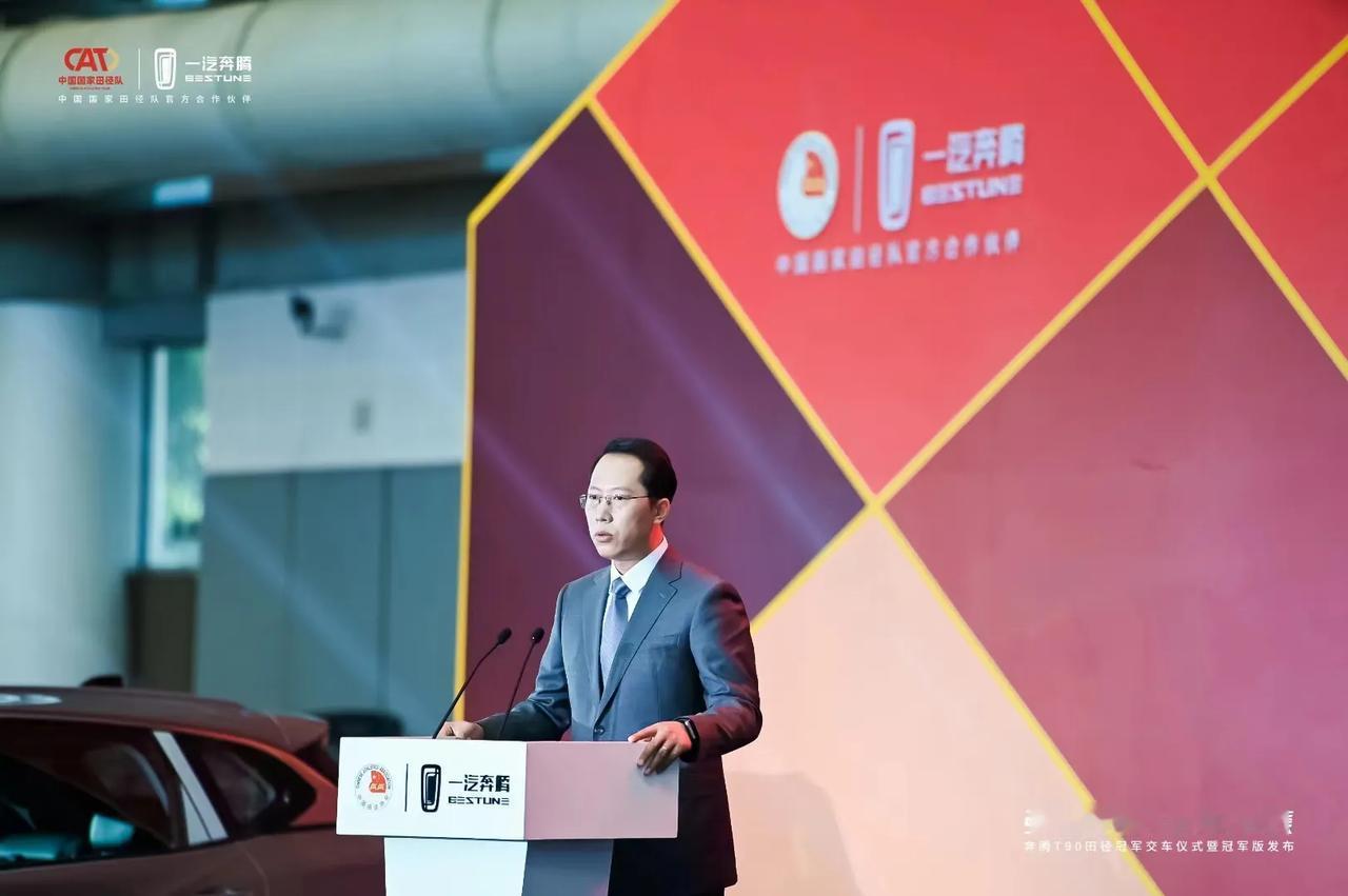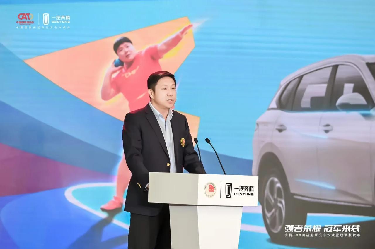 一汽奔腾向26名中国国家田径队冠军分别敬赠1辆奔腾T90冠军版。男子三级跳远实力