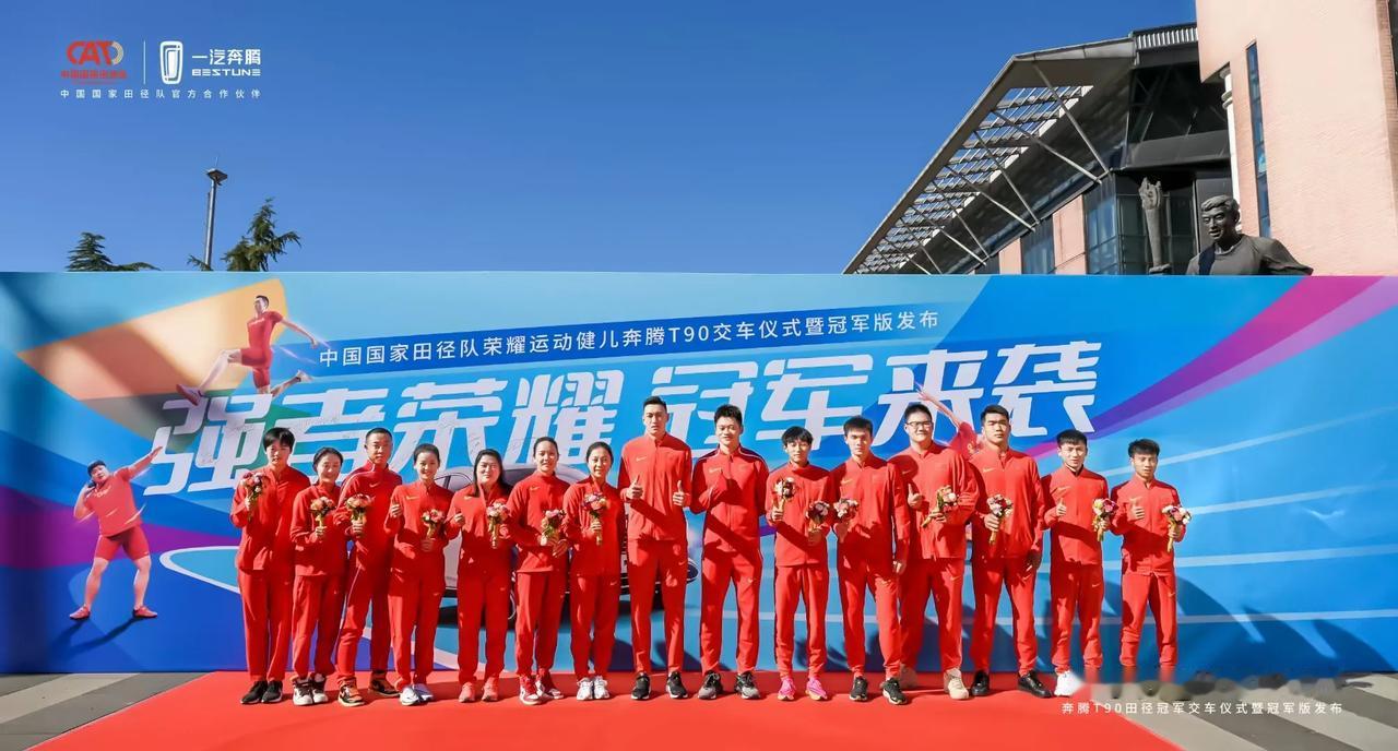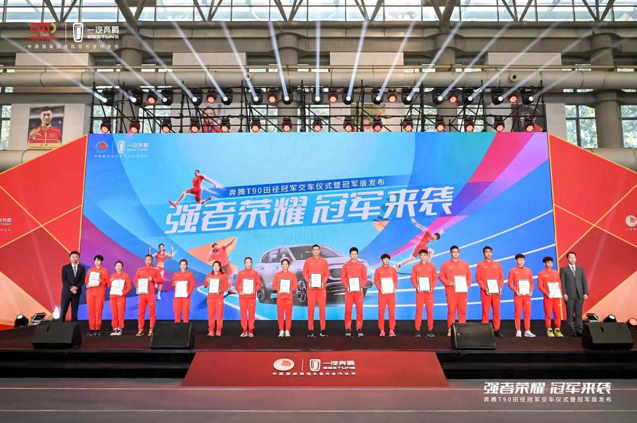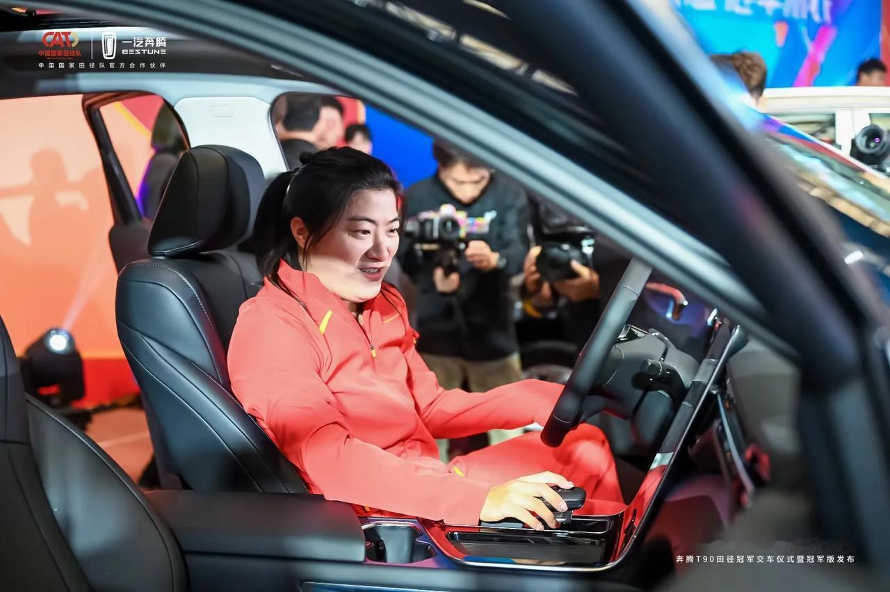 一汽奔腾向26名中国国家田径队冠军分别敬赠1辆奔腾T90冠军版。男子三级跳远实力选手朱亚明、男女百米大战最亮双星谢震业、葛曼棋和男子4x100米飞人严海滨、陈佳鹏等首批车主。