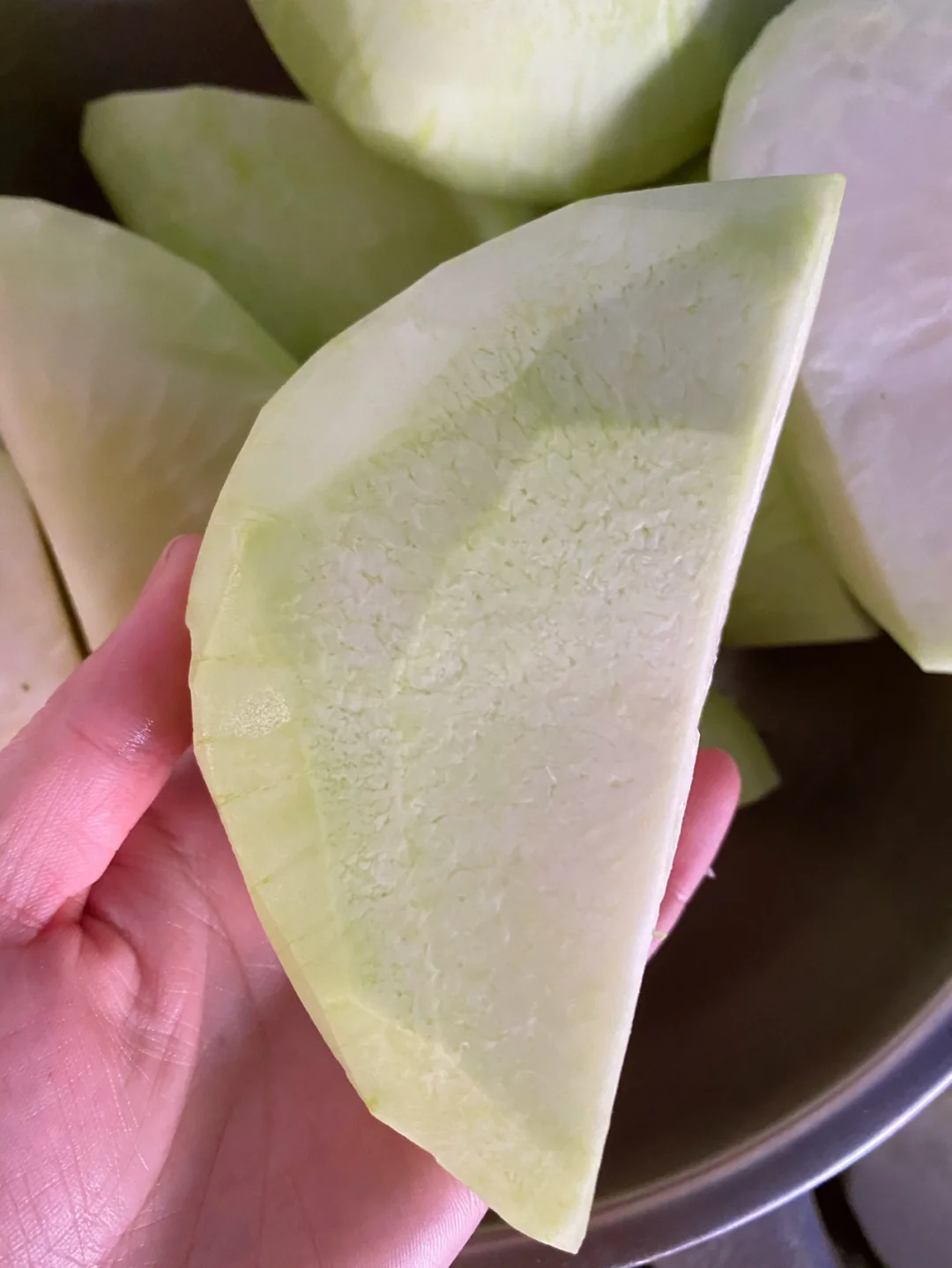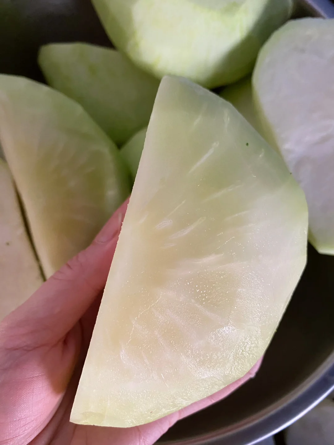 这个是腌制三天的效果,一点水都不用放,芥菜自己出来的水,就把芥菜没过来了。