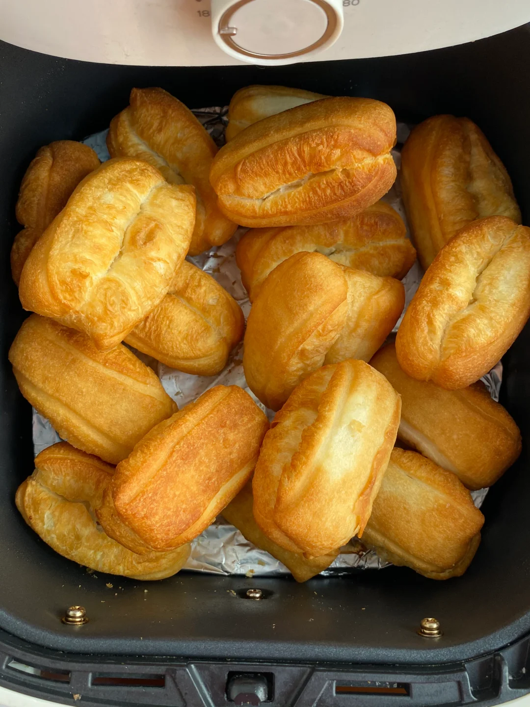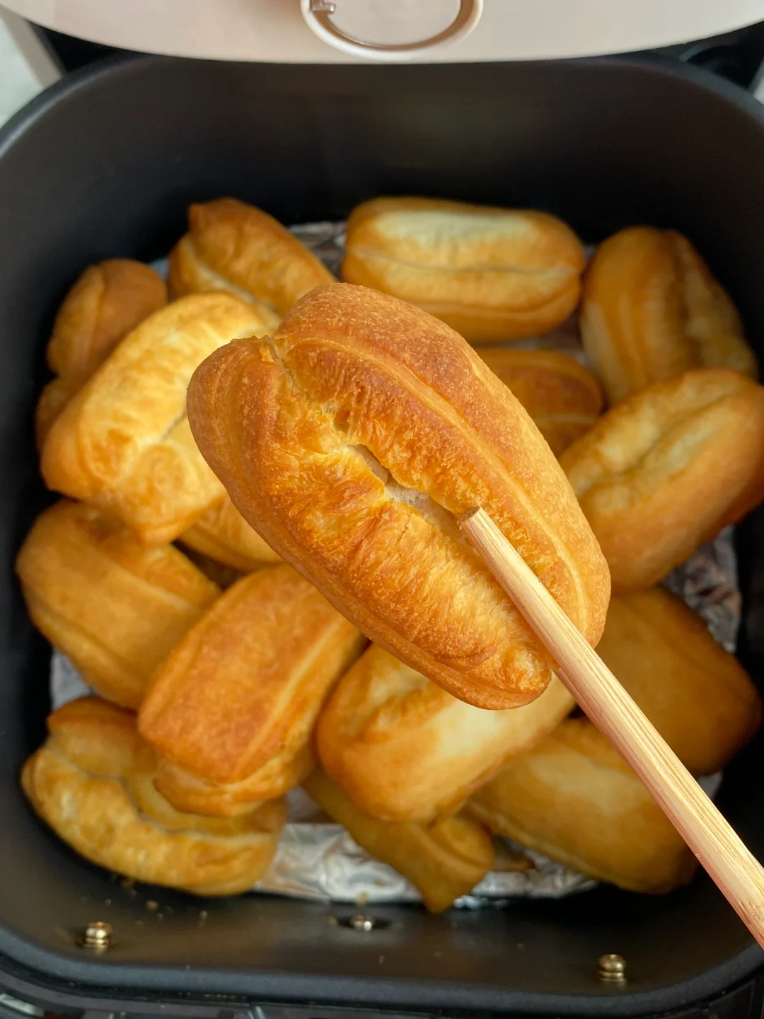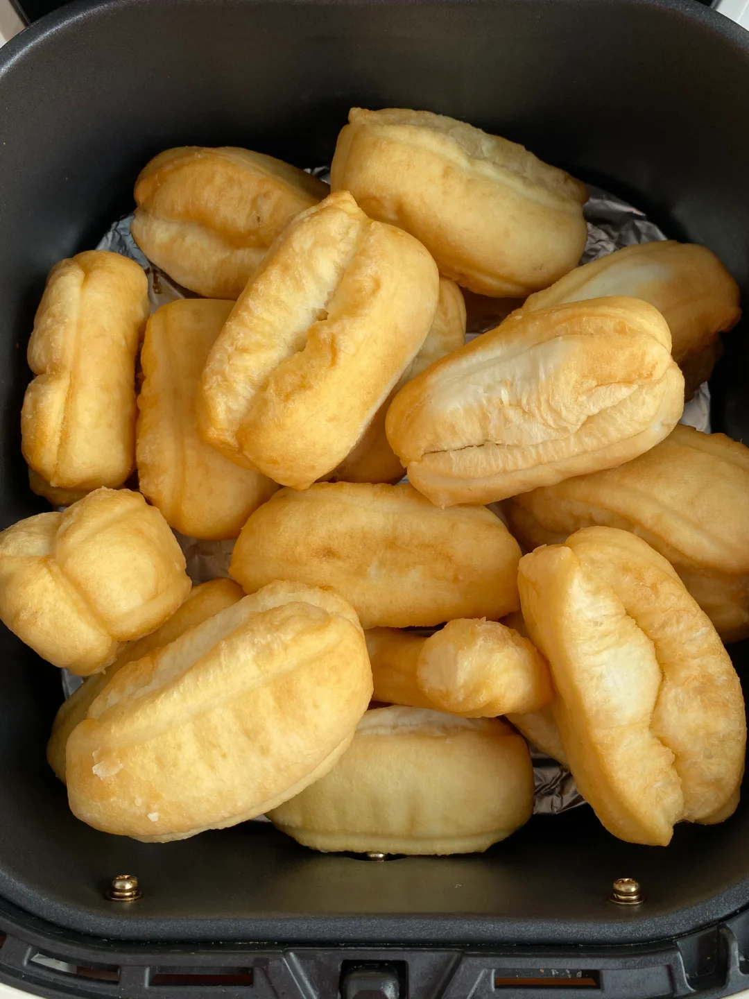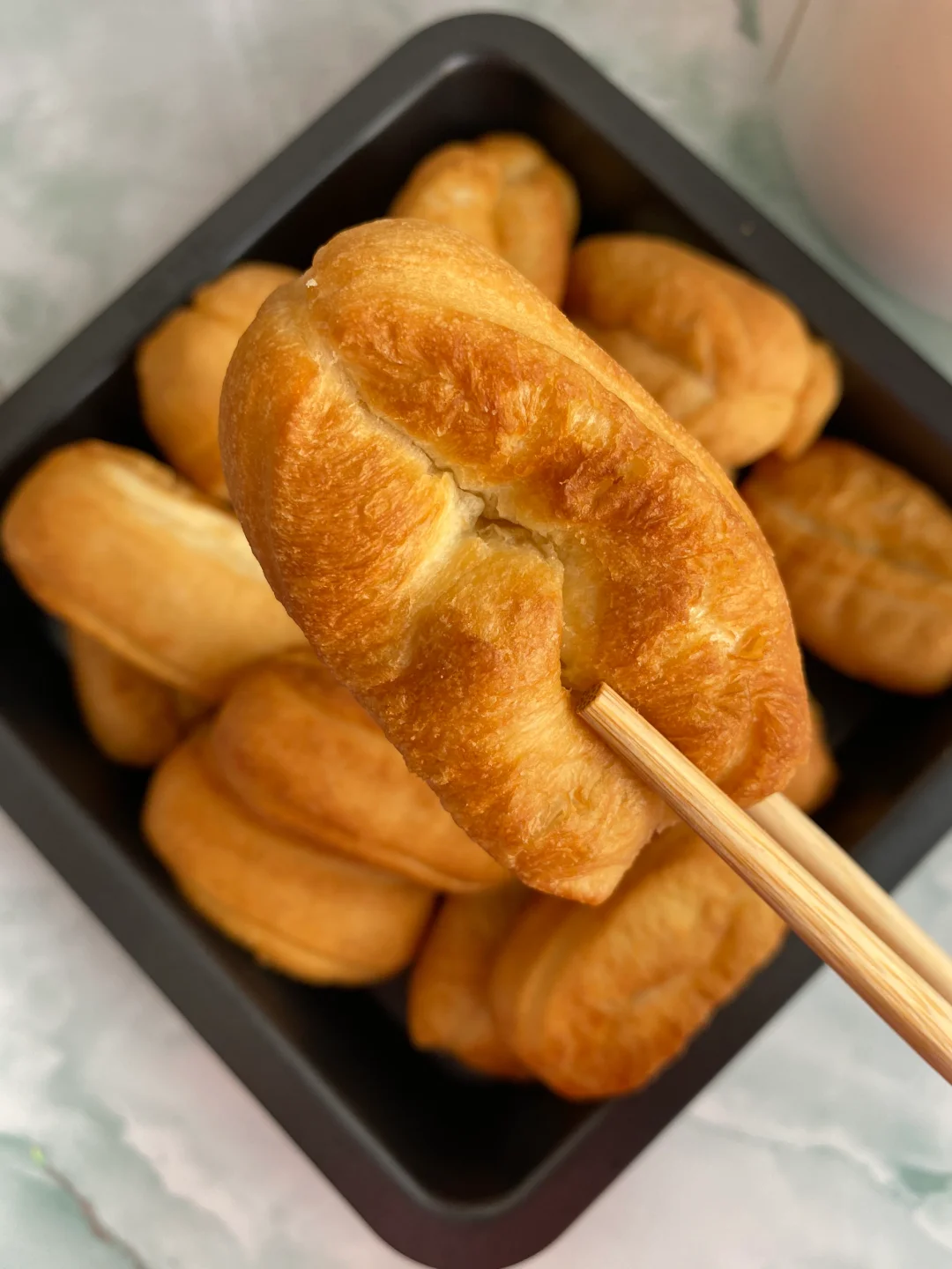 金黄酥脆蓬松个大,烤好的油条泡豆浆里刚刚好!好吃!