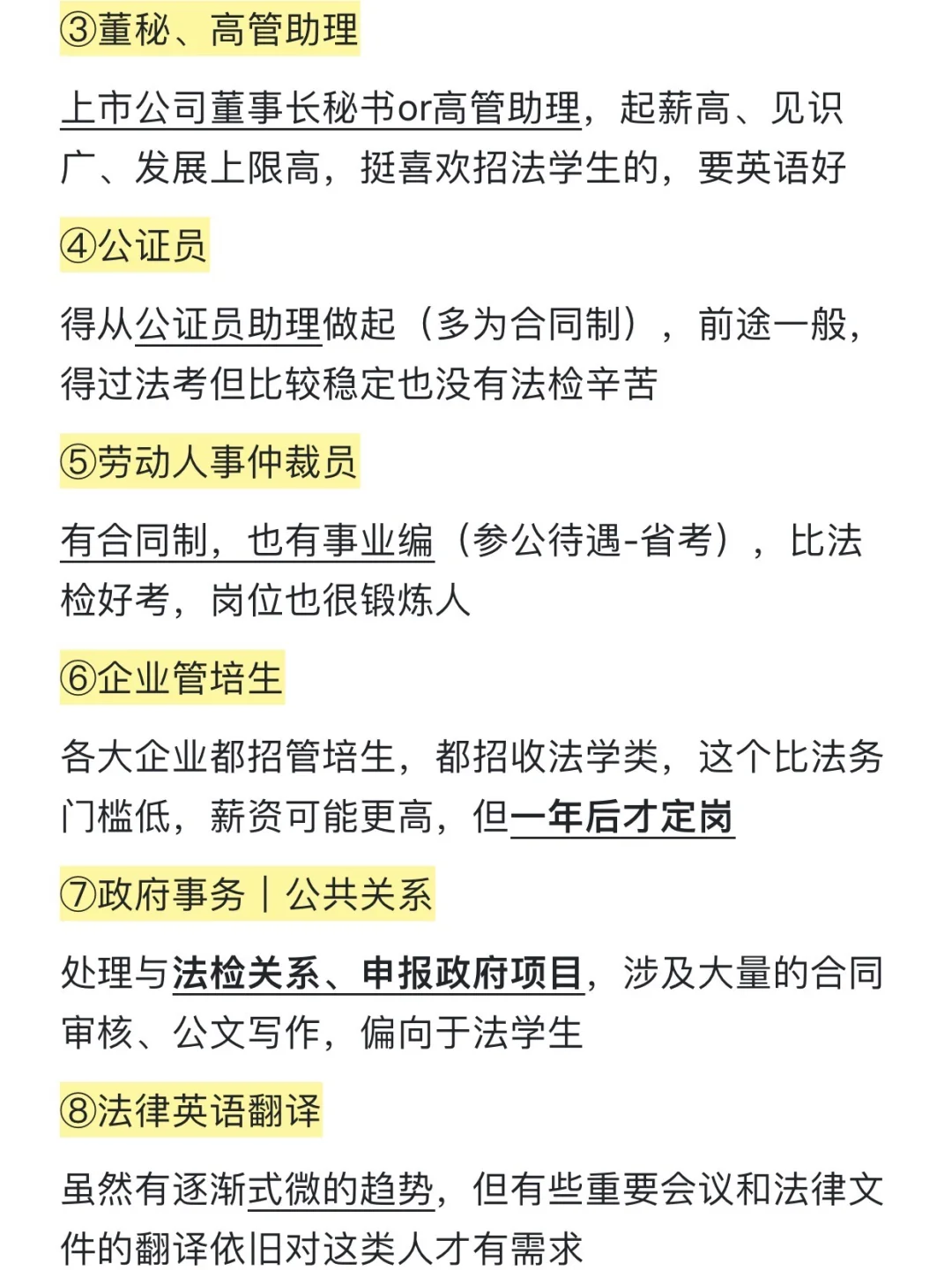 ②法务:法务专员→法务主管→经理助理→法务经理→法务总监