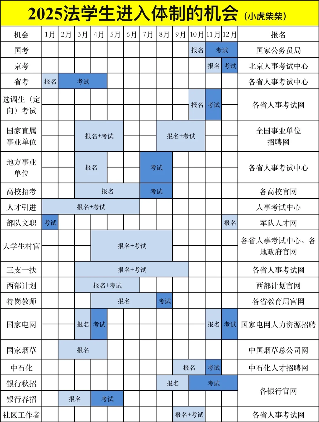 国考、京考、省考、选调生(定向)考试、国家直属事业单位、地方事业单位、高校招考(行政岗、辅导员...)、各地方人才引进、军队文职、大学生村官、三支一扶、西部计划、特岗教师、国家电网、国家烟草、中石化、银行秋招、银行春招、社区工作者