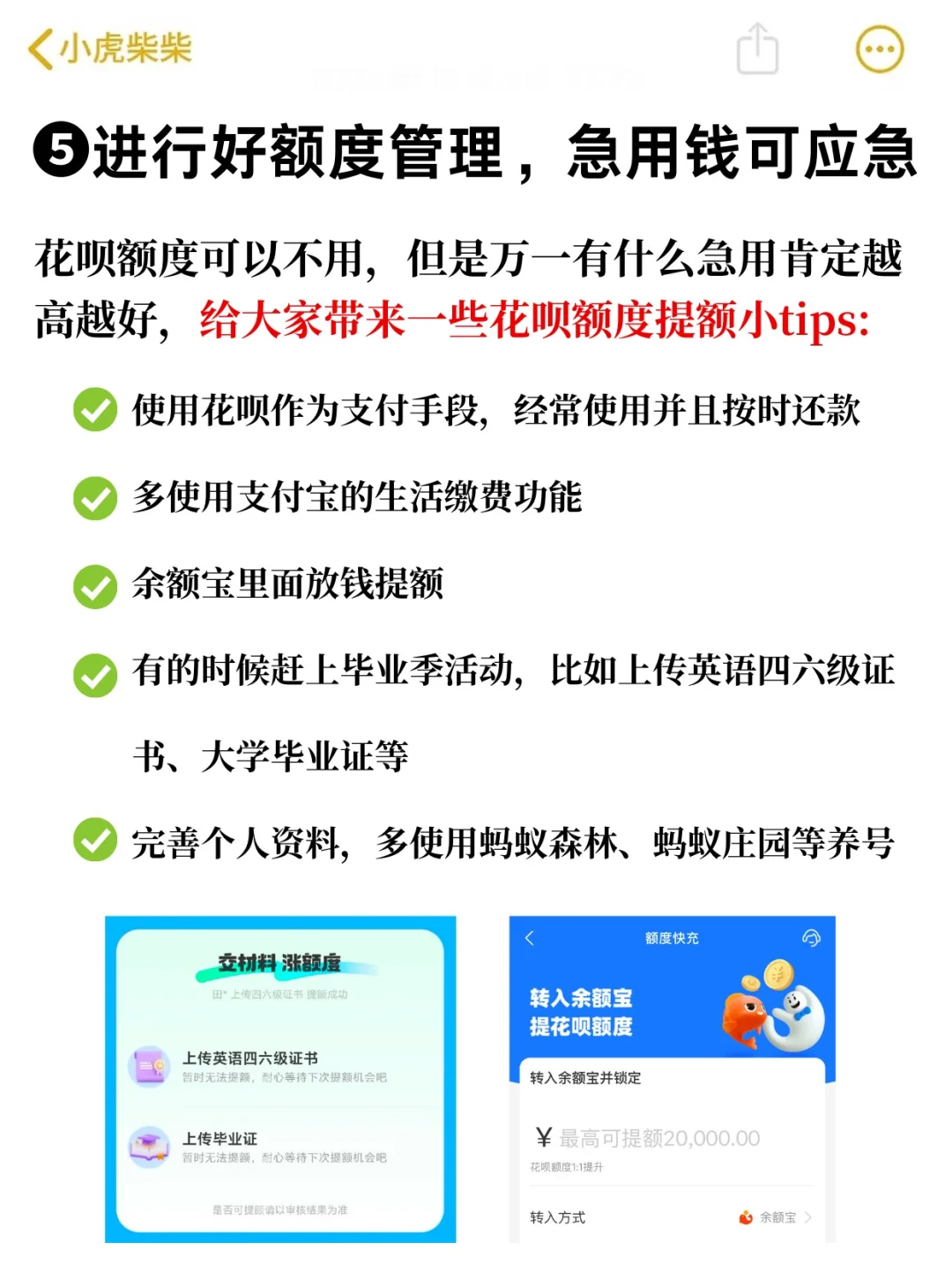 花呗额度可以不用,但是万一有什么急用肯定越高越好,给大家带来一些提额小tips: