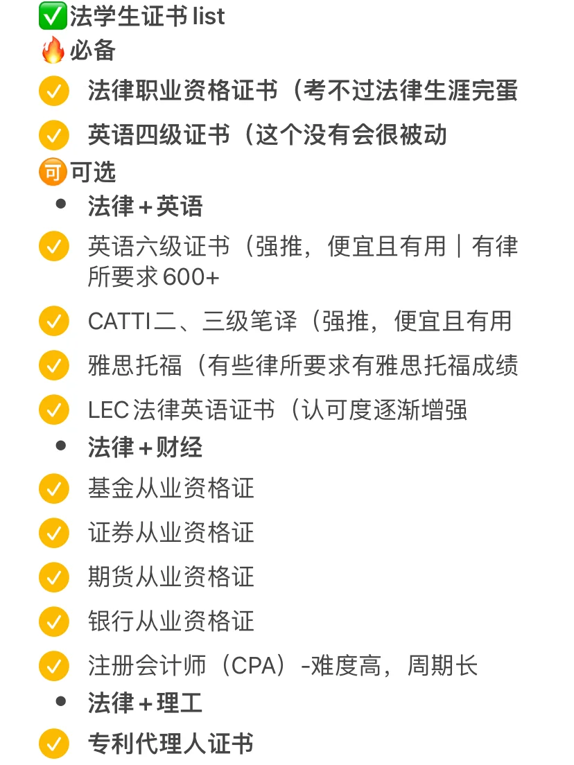 ✅法学生证书list