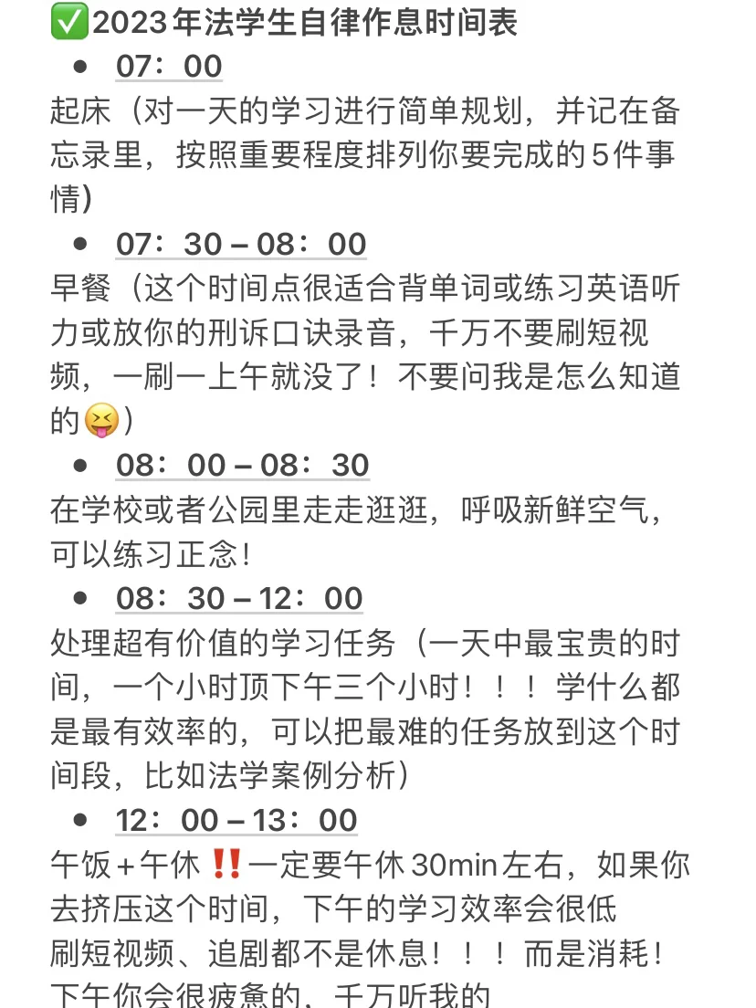 ✅2023年法学生自律作息时间表