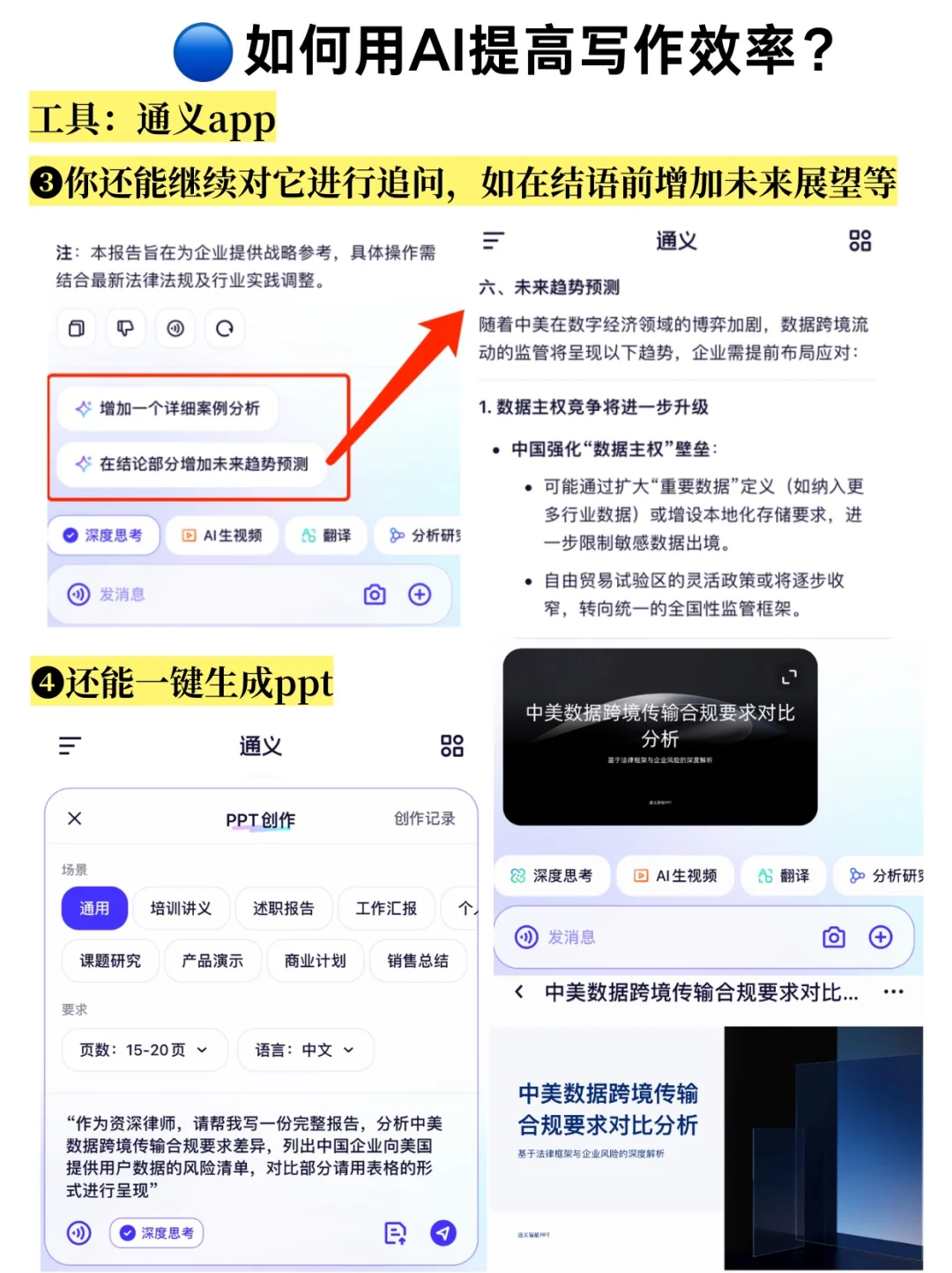 目前用下来,就写作跟PPT的功能来说,我爱用通义app。它能同时搞定写报告和汇报演示2个场景,不用切换其他工具、很方便,方法如下: