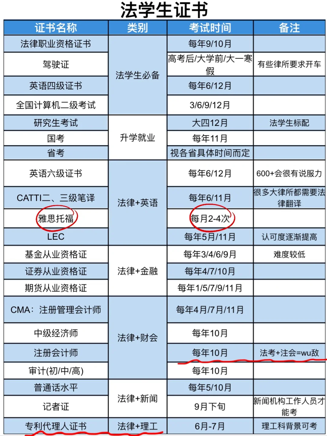 法学生能考的复合型证书(详见图)