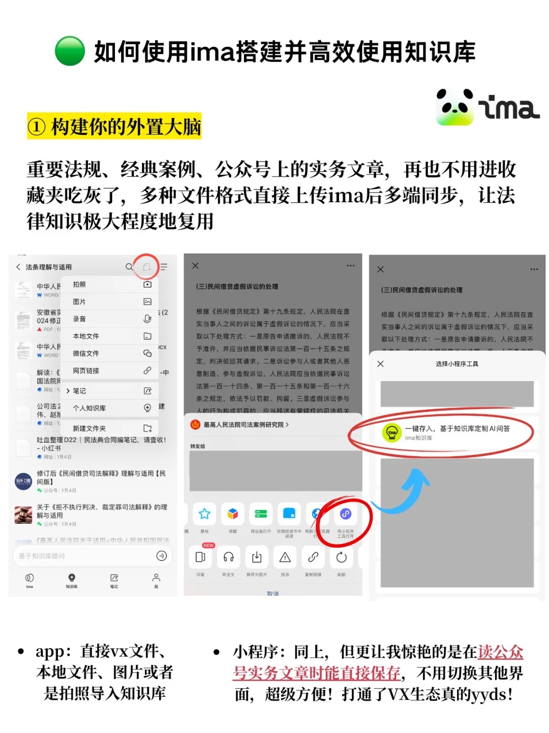 重要法规、经典案例、公众号上的实务文章,再也不用进收藏夹吃灰了,多种文件格式直接上传ima后多端同步,让法律知识极大程度复用