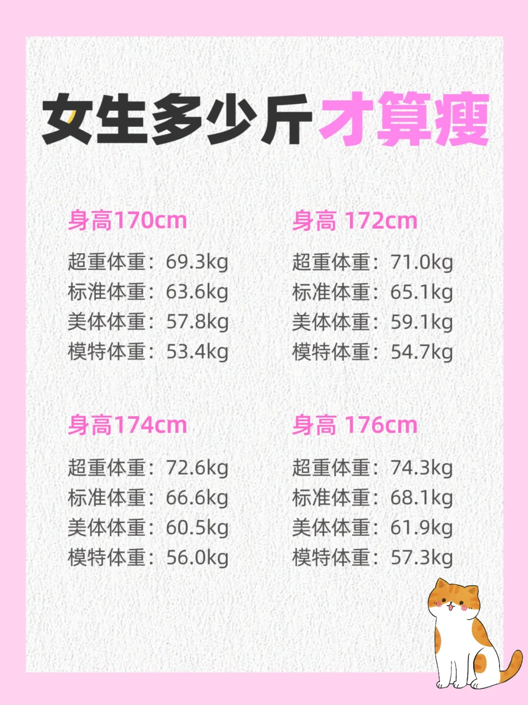💟美体体重(BMI 20):很健康理想,穿衣好看,体型较好,可以不再减重,塑型就好