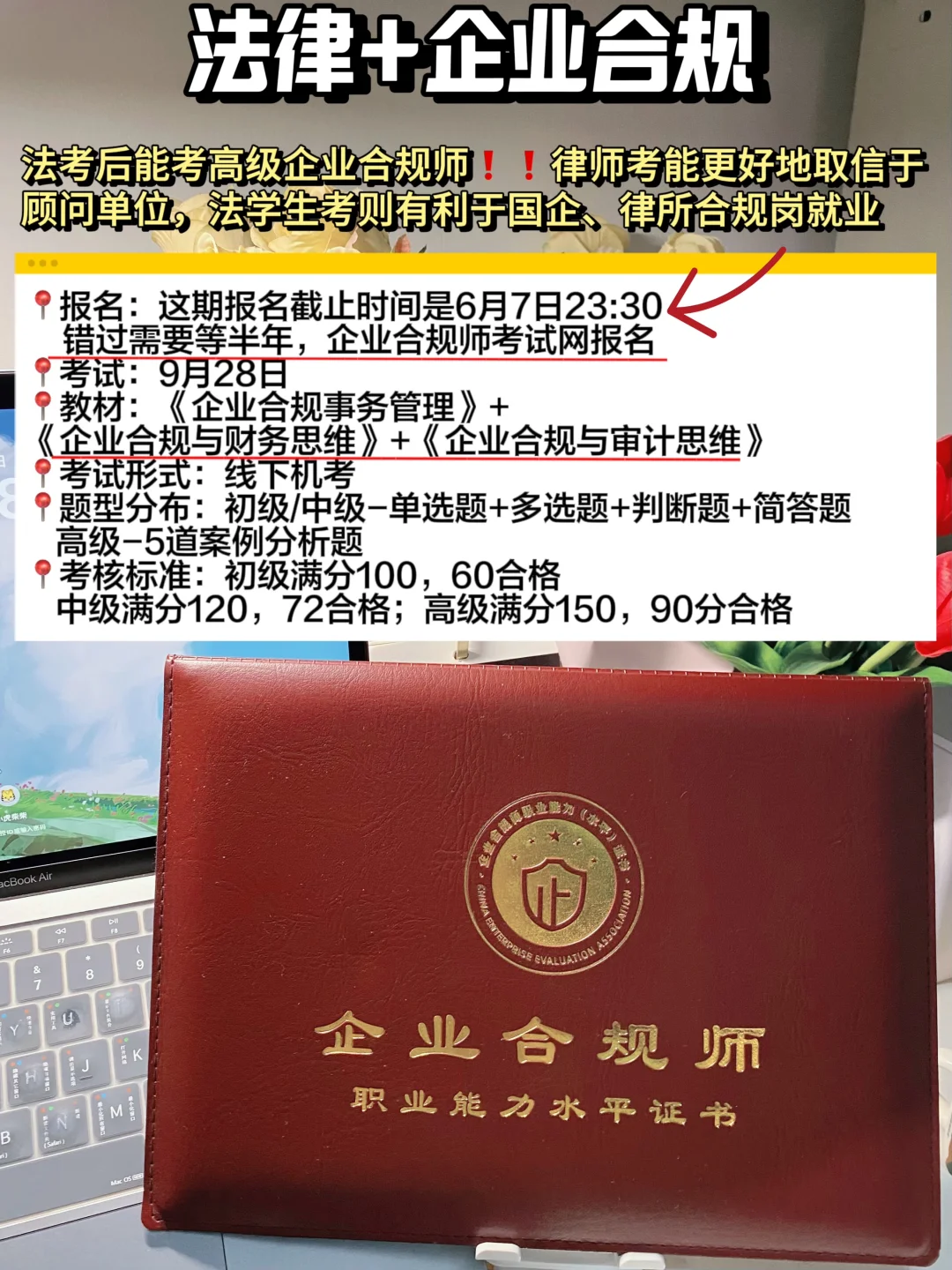 ▪报名:这期报名截止于6月7日23:30,错过要等半年,企业合规师考试网报名