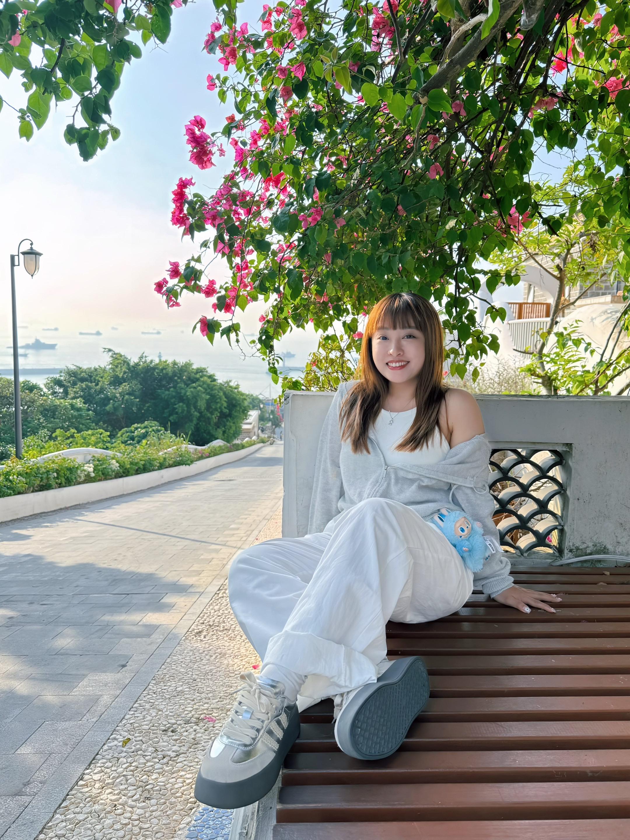 1️⃣爱民路【图6、7】🚒消防队右边的斜坡一直往上,中途会经过新开的一家比较☕️韩系的咖啡店,走两段大斜坡,看到三角梅的凳子就到了,用3倍去拍,有一种路的尽头就是海的既视感🌊