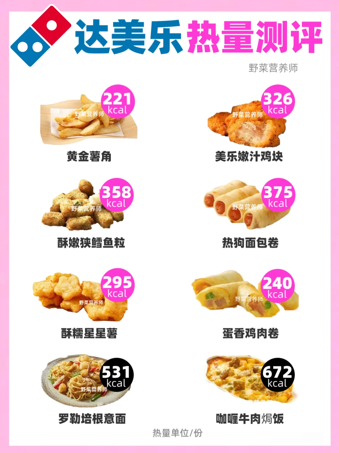 整理了24款披萨和8款小食的热量