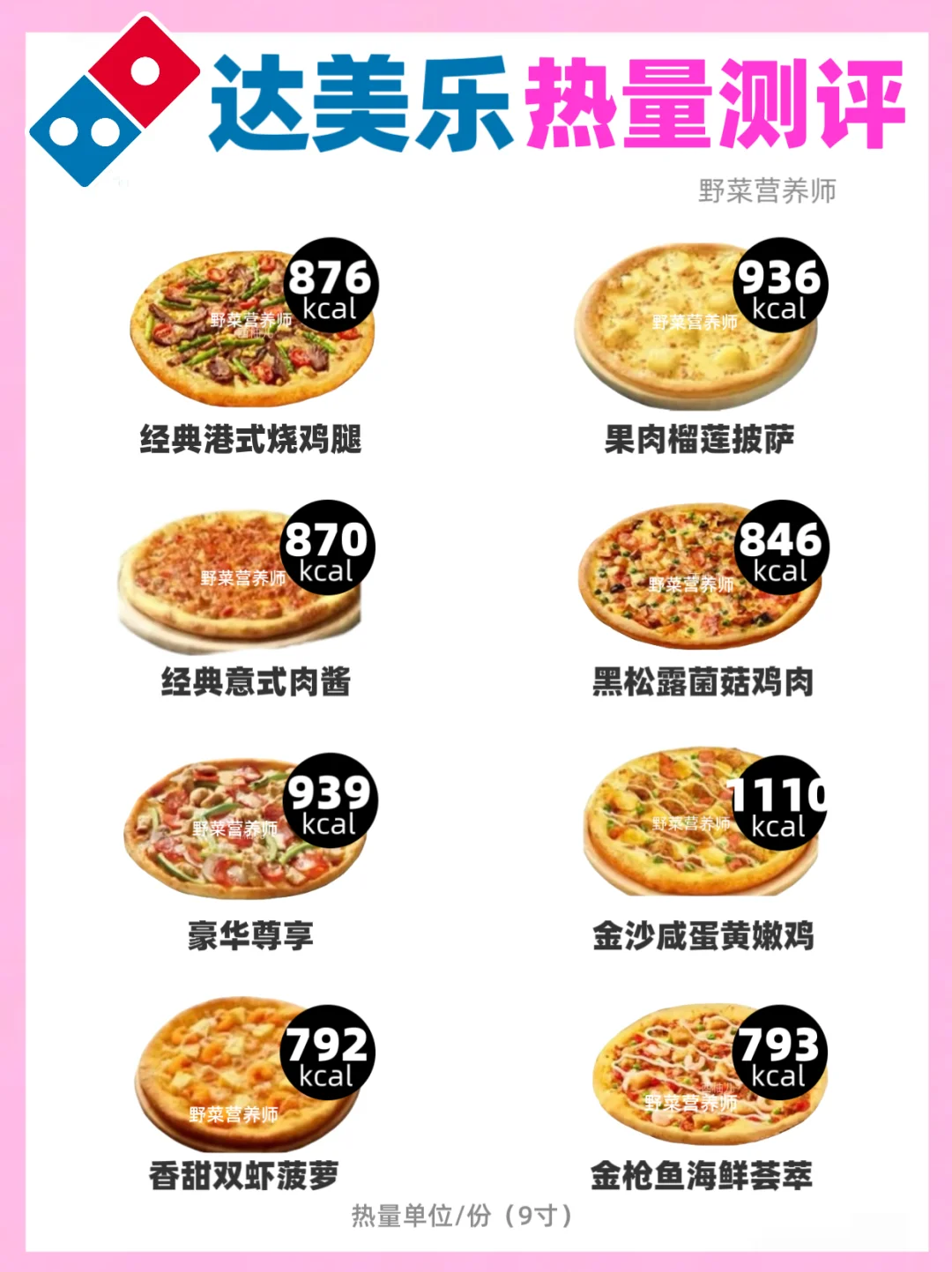🍕热量为9寸份 单片的热量可以÷6