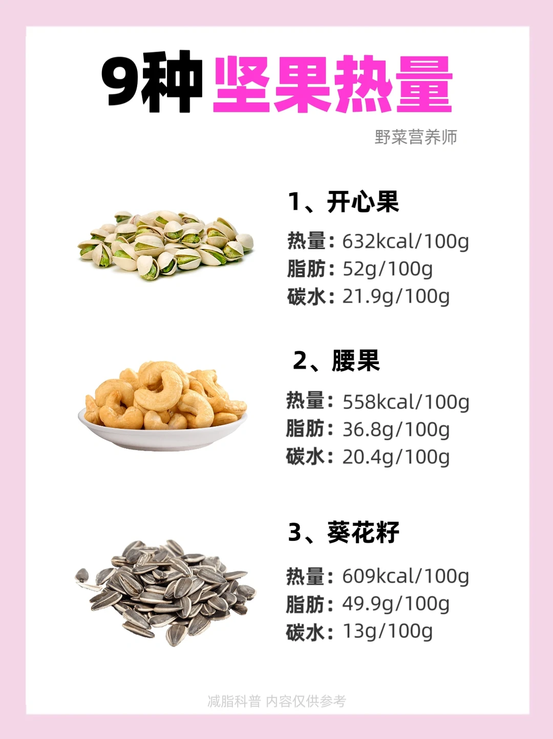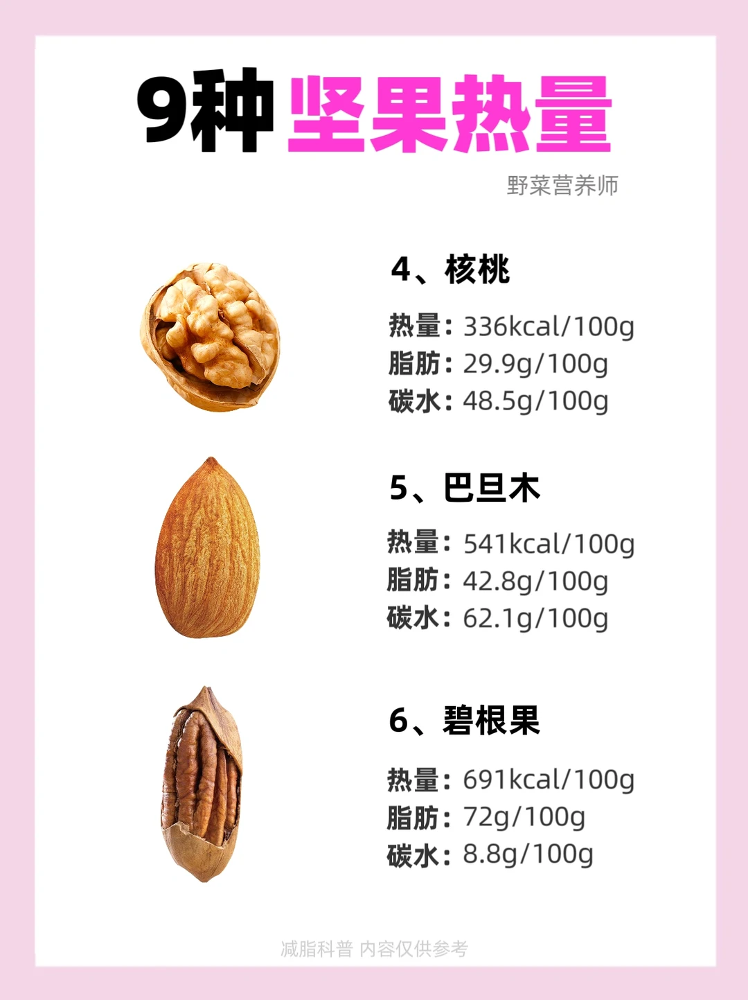 坚果营养丰富,🔥量较高,有时不知不觉中就会吃多长肉。如何正确吃坚果❓✂️脂期每天可以吃多少❓这些问题都在图片里,快发给你正在➖脂的姐妹康康吧!