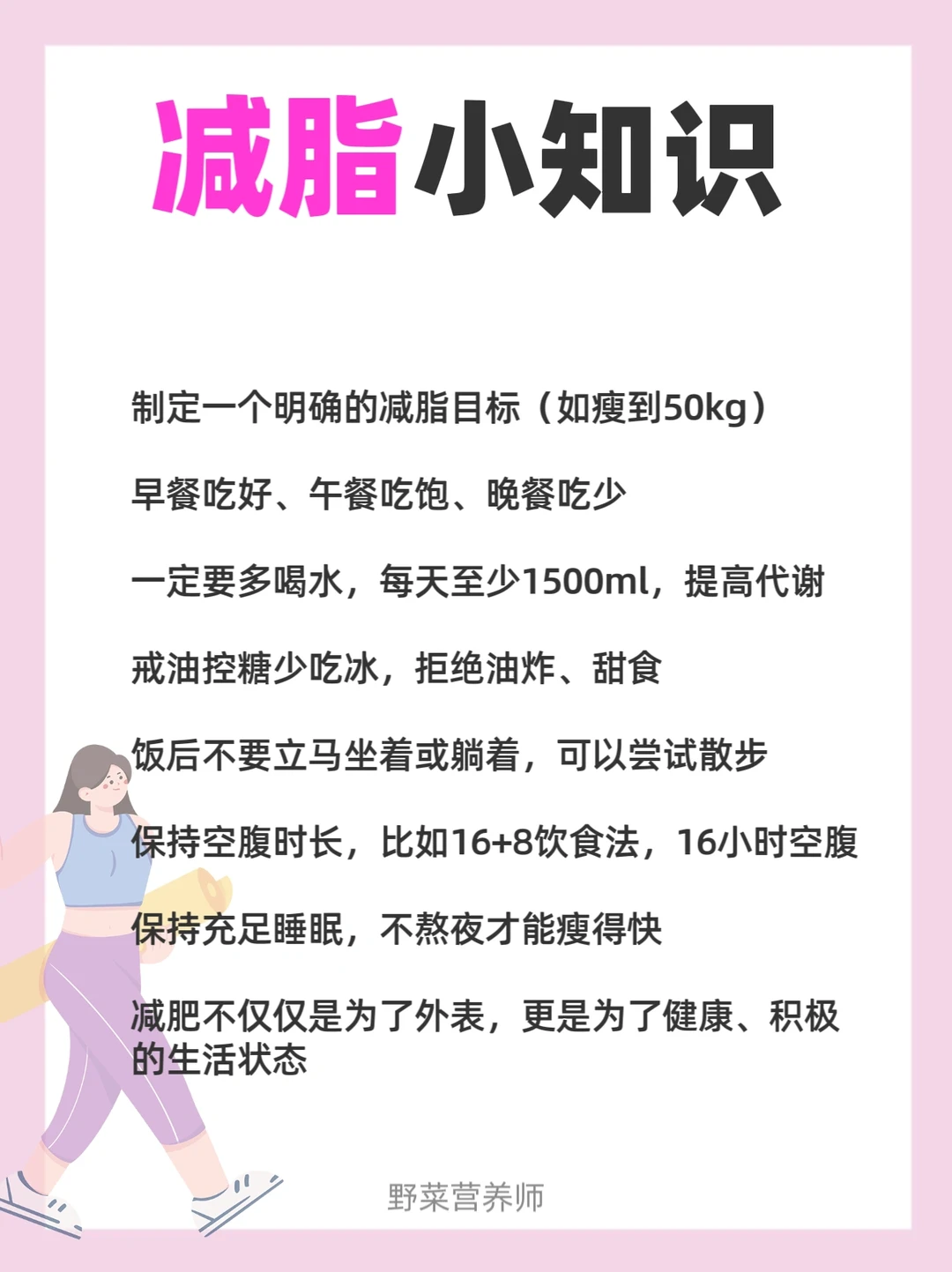 - 制定一个明确的减脂目标(如瘦到50kg)