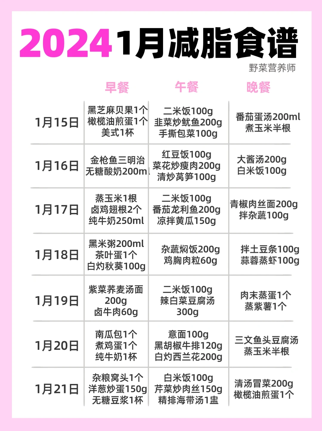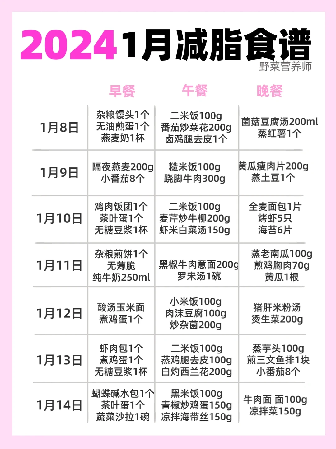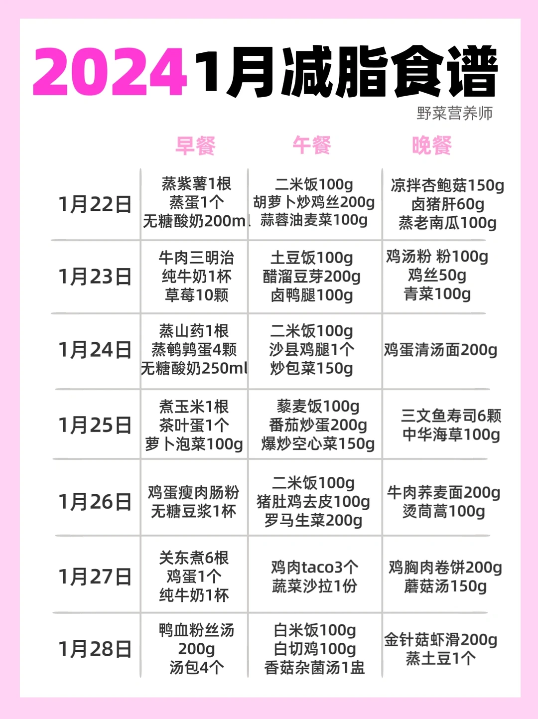 2024新的一年是不是可以安排开始你的减脂计划了,野菜给大家分享了2024年一整月的减脂食谱,方便大家照着做和外食选择,记住这个技巧: