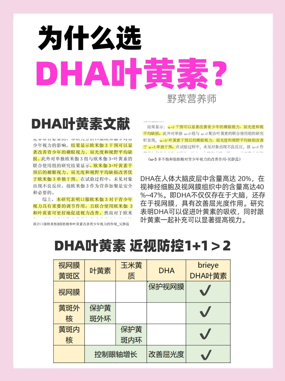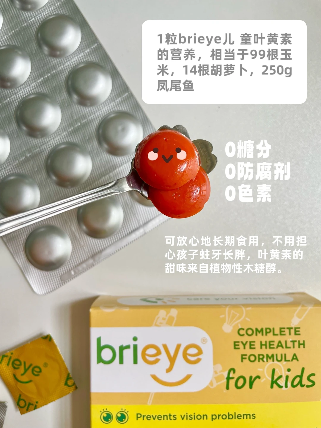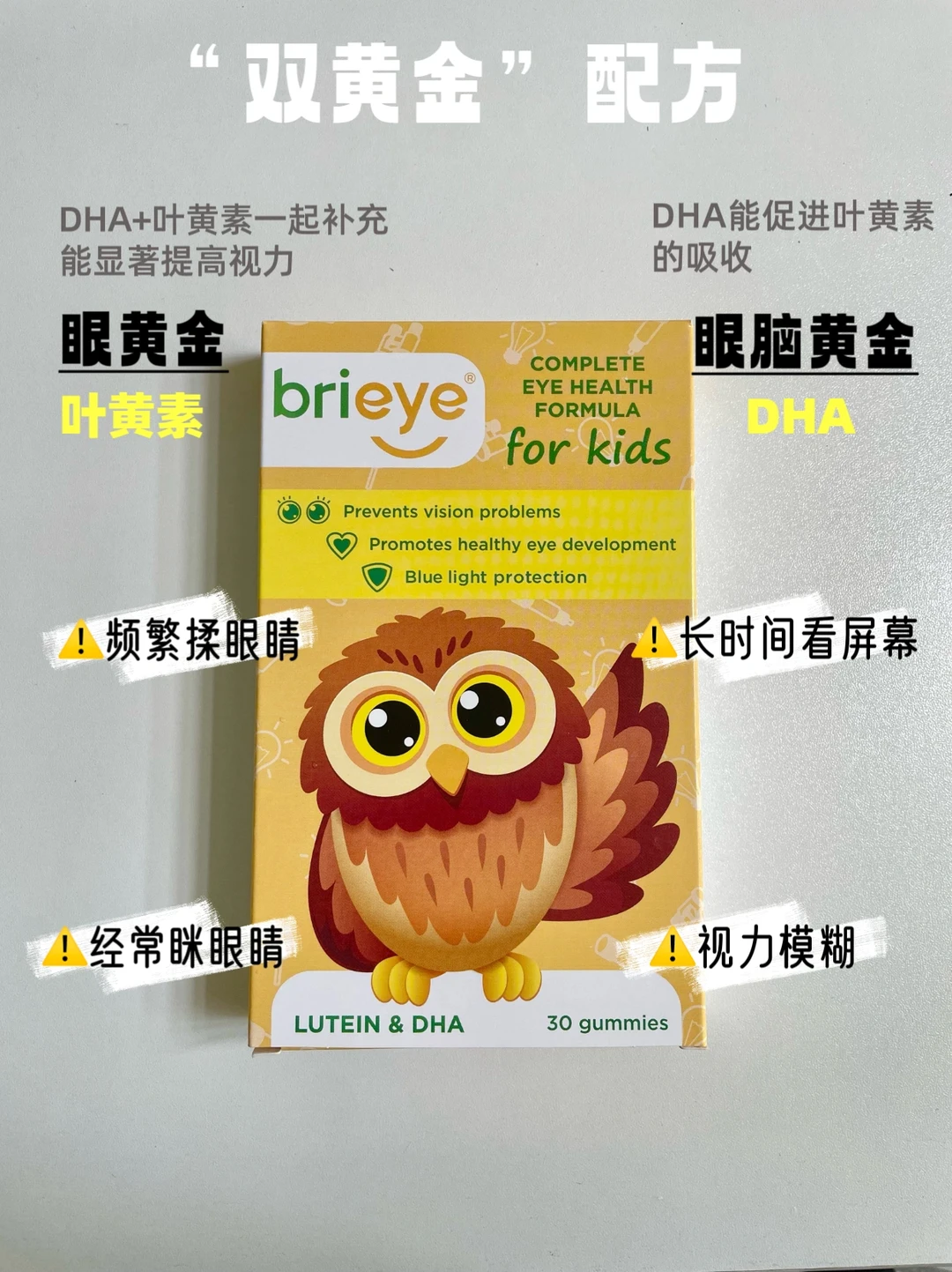 另外,叶黄素和DHA一起补充,能帮助叶黄素吸收,并显著提📶视力,我给孩子吃的是中山眼科葛坚安利的brieye 珍悅目儿童叶黄素,欧洲进kou的,有双黄金、双专利配方,天然配方,叶黄素DHA同补效果加倍!