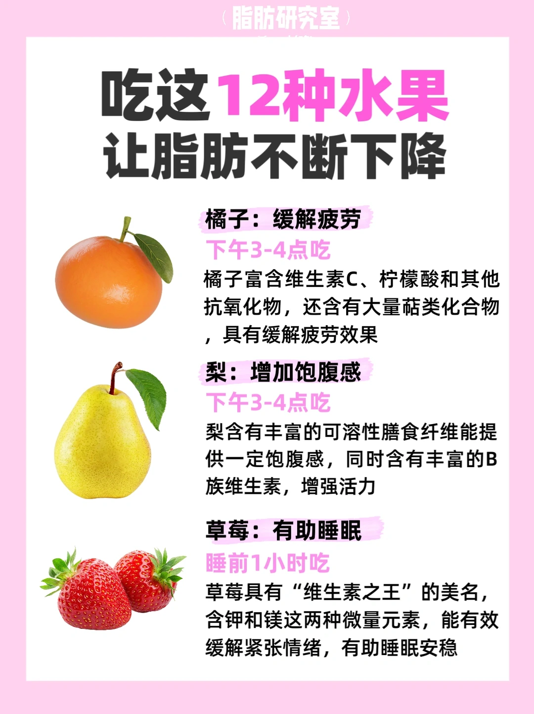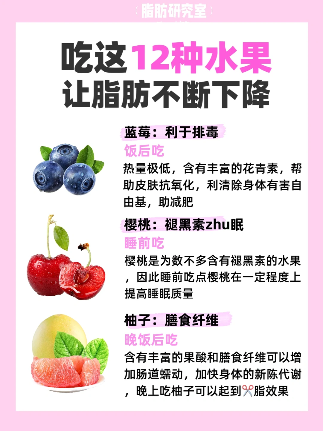 今天我给大家详细整理了利于减肥的12种水果,和它们的功效!【亲测有效】减脂期必备‼️