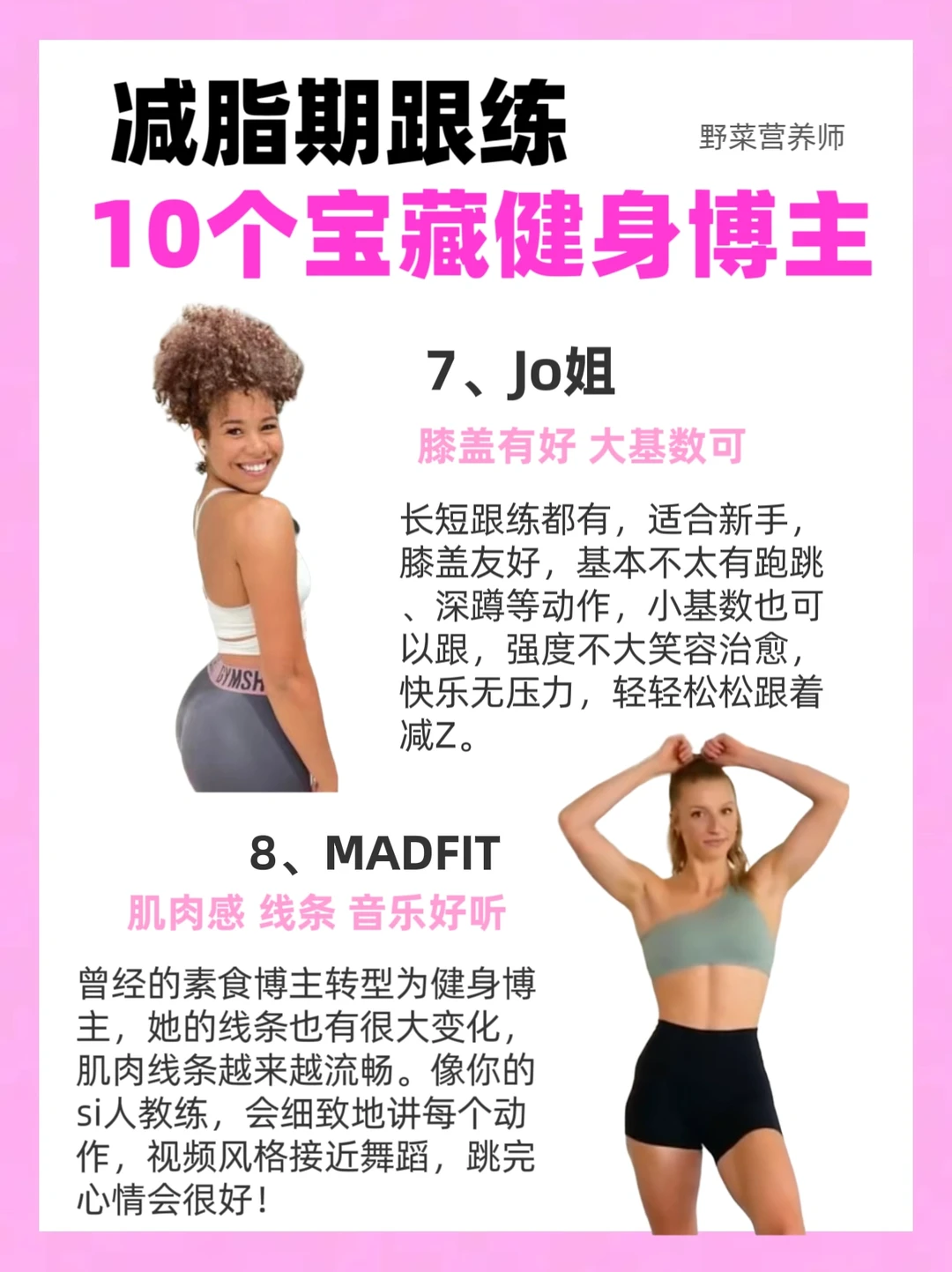 曾经的素食博主转型为健身博主,她的线条也有很大变化,肌肉线条越来越流畅。像你的si人教练,会细致地讲每个动作,视频风格接近舞蹈,跳完
