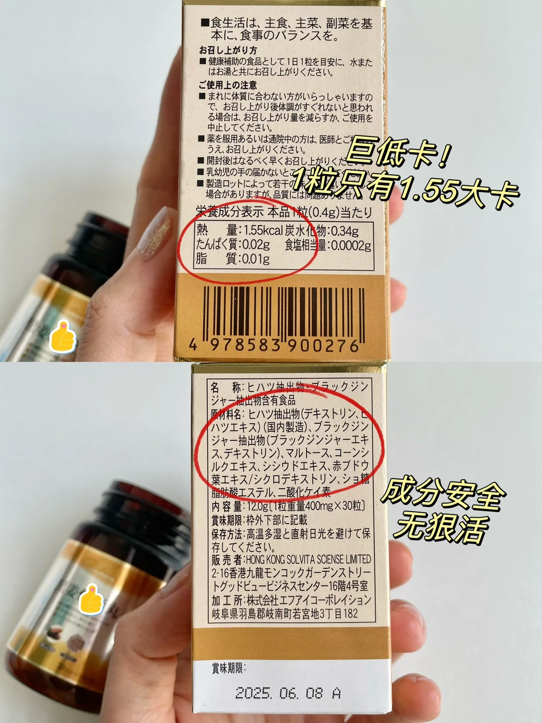 如果怕不爱运动窝沙发追剧长肉肉,可以在饭后吃1粒Solvita Science黑姜🔥脂丸,主要含有黑姜和荜拨成分,玉米须、香菇及红葡萄叶提取物等,成分含量巨高!黑姜是体重管理领域排名第👆🏻的gong能性原料,1粒含有黑姜和荜拨提取物很高,各含有165mg。