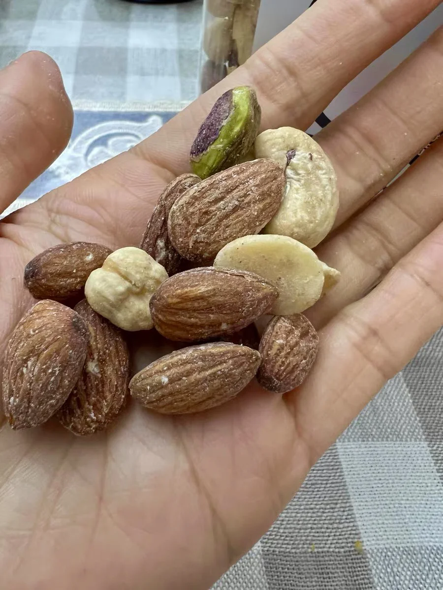 坚果的营养价值很高,但是其中的脂肪含量也非常的高,因此不建议过多的食用坚果。《中国居民膳食指南(2022)》推荐,平均每周食用坚果50~70克,平均每天10克左右即可,相当于带壳葵花瓜子20~25克,约一把半,或花生15~20克,或核桃2~3个。