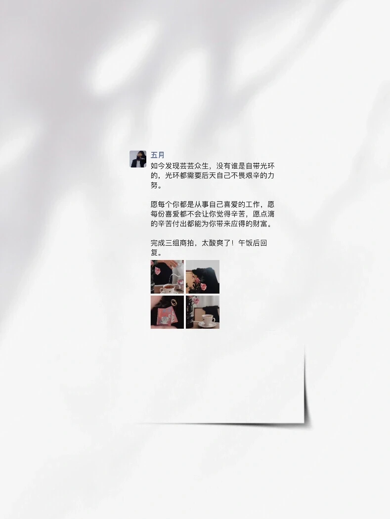 用摄影,用美学,重创朋友圈,激.活朋友圈,接商拍接广告。虽然不是大咖,但也影响了好多人,接受到大家对我的喜爱。