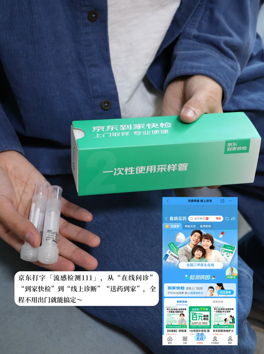 ✔现在只要身体有点不对劲,直接京东打字「流感检测111」,从“在线问诊”“到家快检”到“线上诊断”“送药到家”,全程不出门就搞定,又省心又值!简直是保健康、搞事业双赢的选择