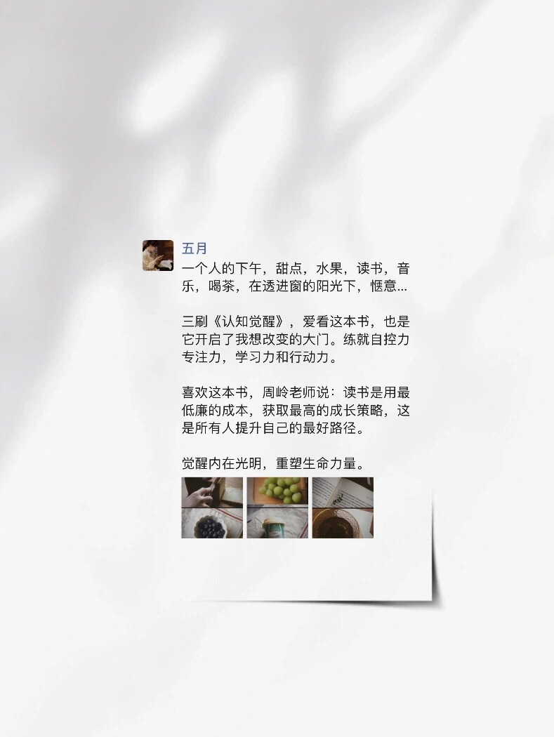 每天读书,且读懂书。坚持运动,拍照,写文,会去刻意发现生活中的小确幸。