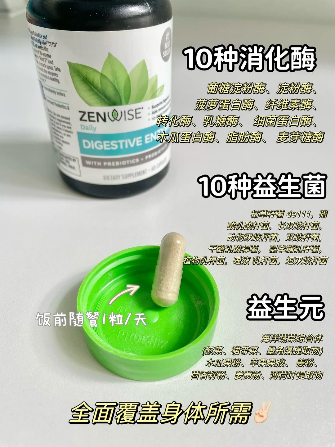 野菜营养师自用了几个月的消化酶益生菌,是亚马逊消化酶益生菌品类TOP1 ——ZENWISE消化酶益生菌,我自己有时候吃油腻或吃多不舒服的时候就会吃这款