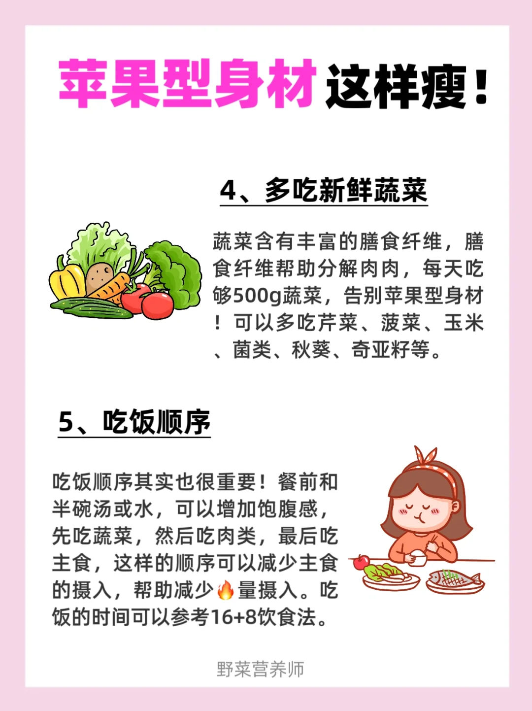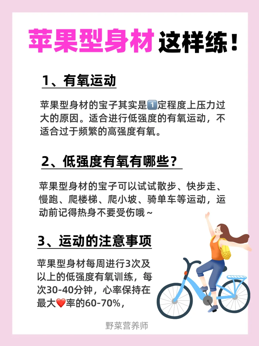 🍎苹果型身材的宝通常是躯干较厚、肩宽胳膊粗、四肢较纤细,这样的宝子如何瘦全在图片里‼️