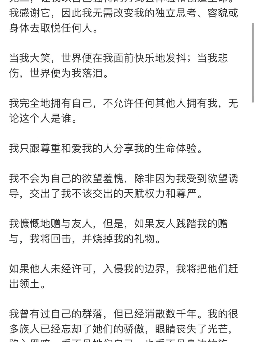 我不会为自己的欲望羞愧,除非因为我受到欲望诱导,交出了我不该交出的天赋权力和尊严。