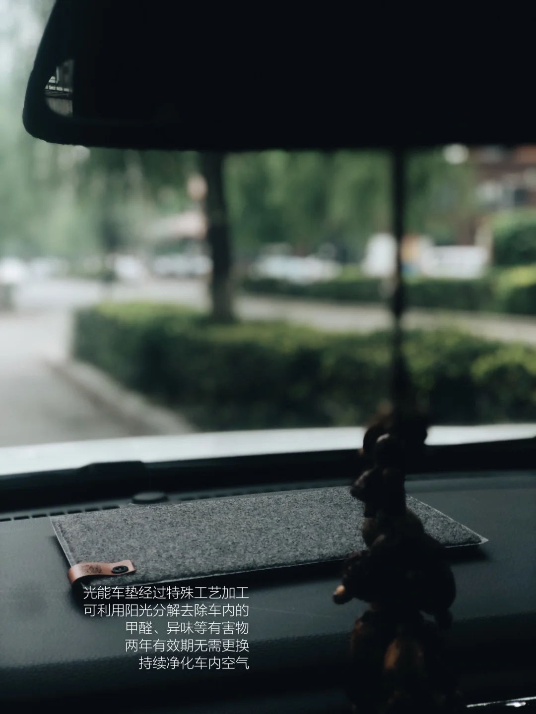 老公送的这款Airplot的光能车垫和丝碧清喷雾。光能车垫通过吸收阳光中的紫外线光子能量,跟接触到的空气进行氧化还原,能有效分解去除车内的甲醛、异味等有害物质,能让车里的空气保持纯净。