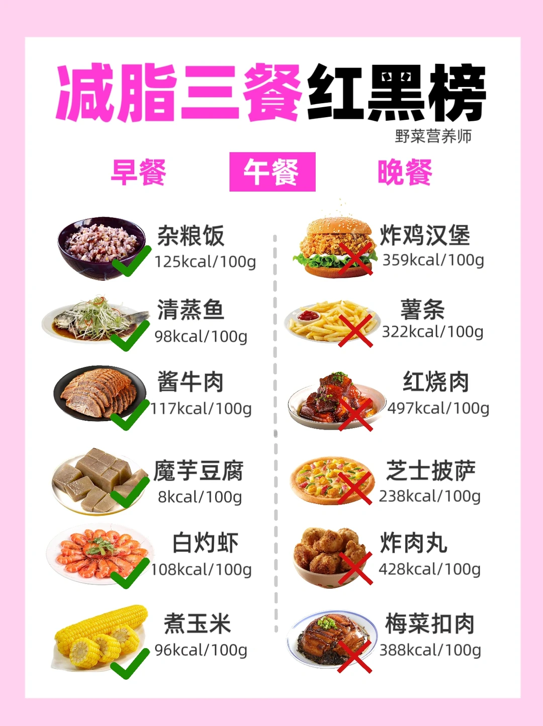 减脂期饮食红黑榜🔥可以吃🆚少吃㊙️附热量