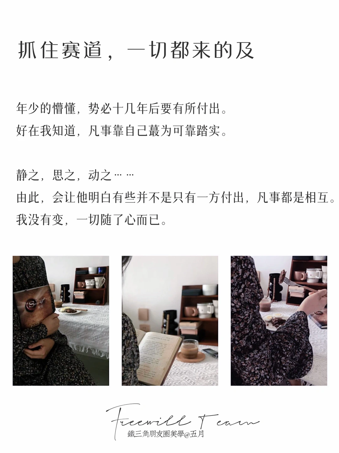 于我就,是雷打不的动行动。读书运,动,摄影,发友朋圈,小写红书。