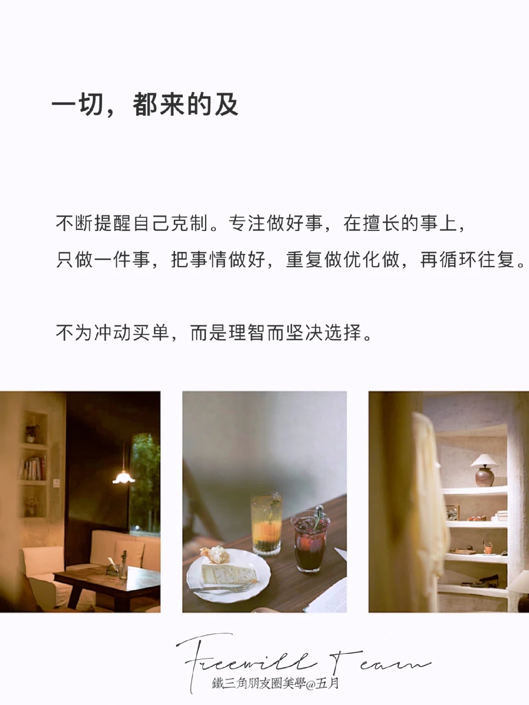 不断提醒自己克制。专.注做好事,在擅长的事上,只做一件事,把事情做好,重复做优化做,再循环往复。