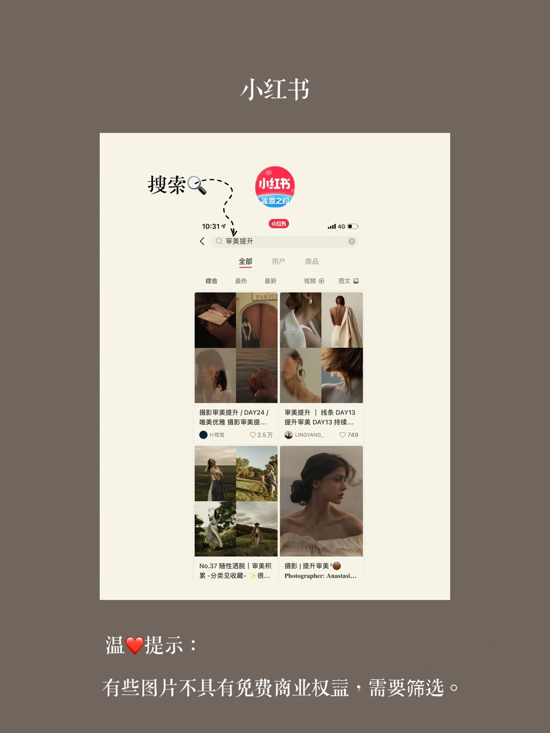 打开以上App可在搜索🔍栏输入『审美提升/审美积累/模特/光影/法式/日韩/ins』等等。或者搜索🔍你知道的摄影师,都🉑️。