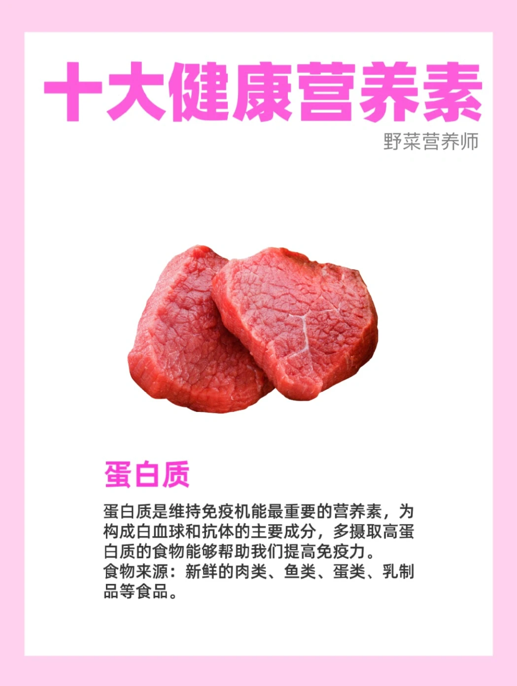 1️⃣蛋白质是维持免疫机能最重要的营养素,为构成白血球和抗体的主要成分,多摄取高蛋白质的食物能够帮助我们提高免疫力。