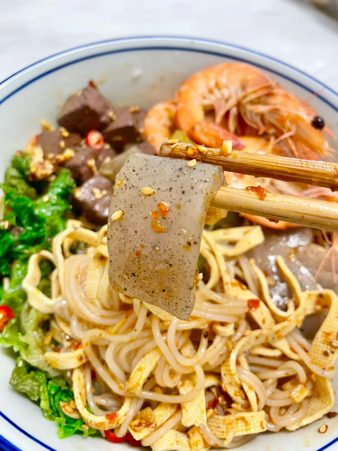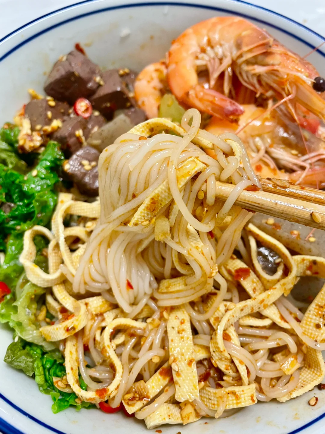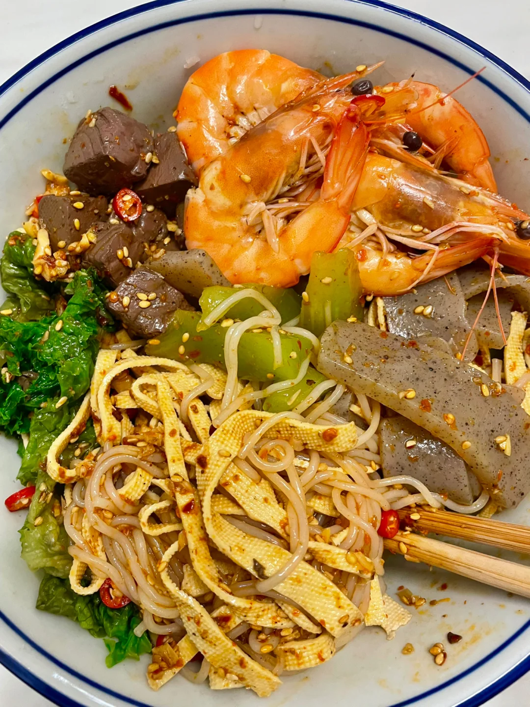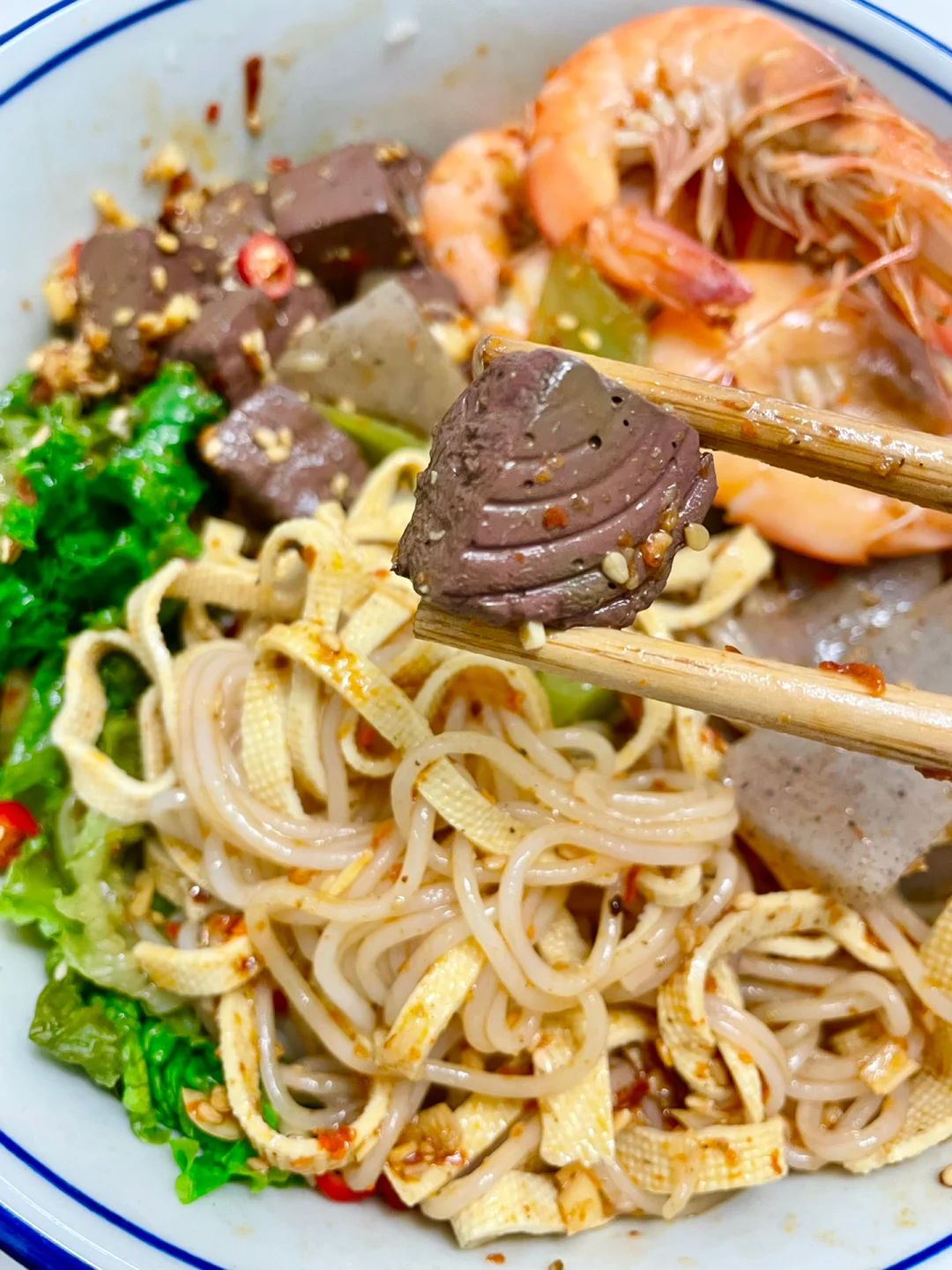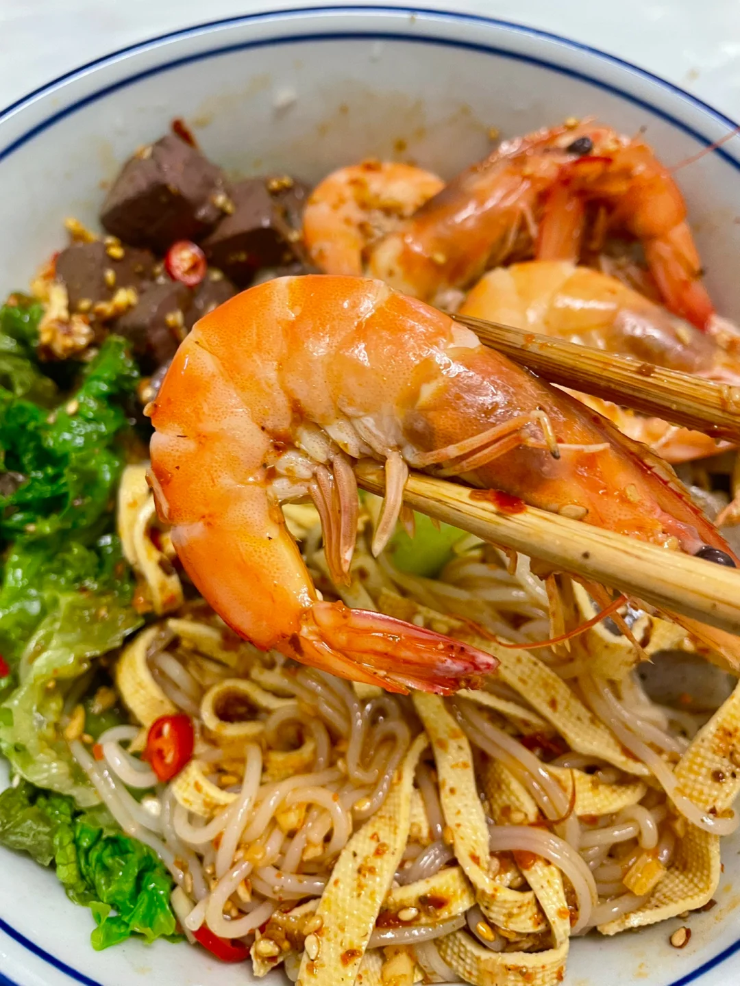 ✨食材:活虾🦐生菜魔芋豆皮莴笋米线
