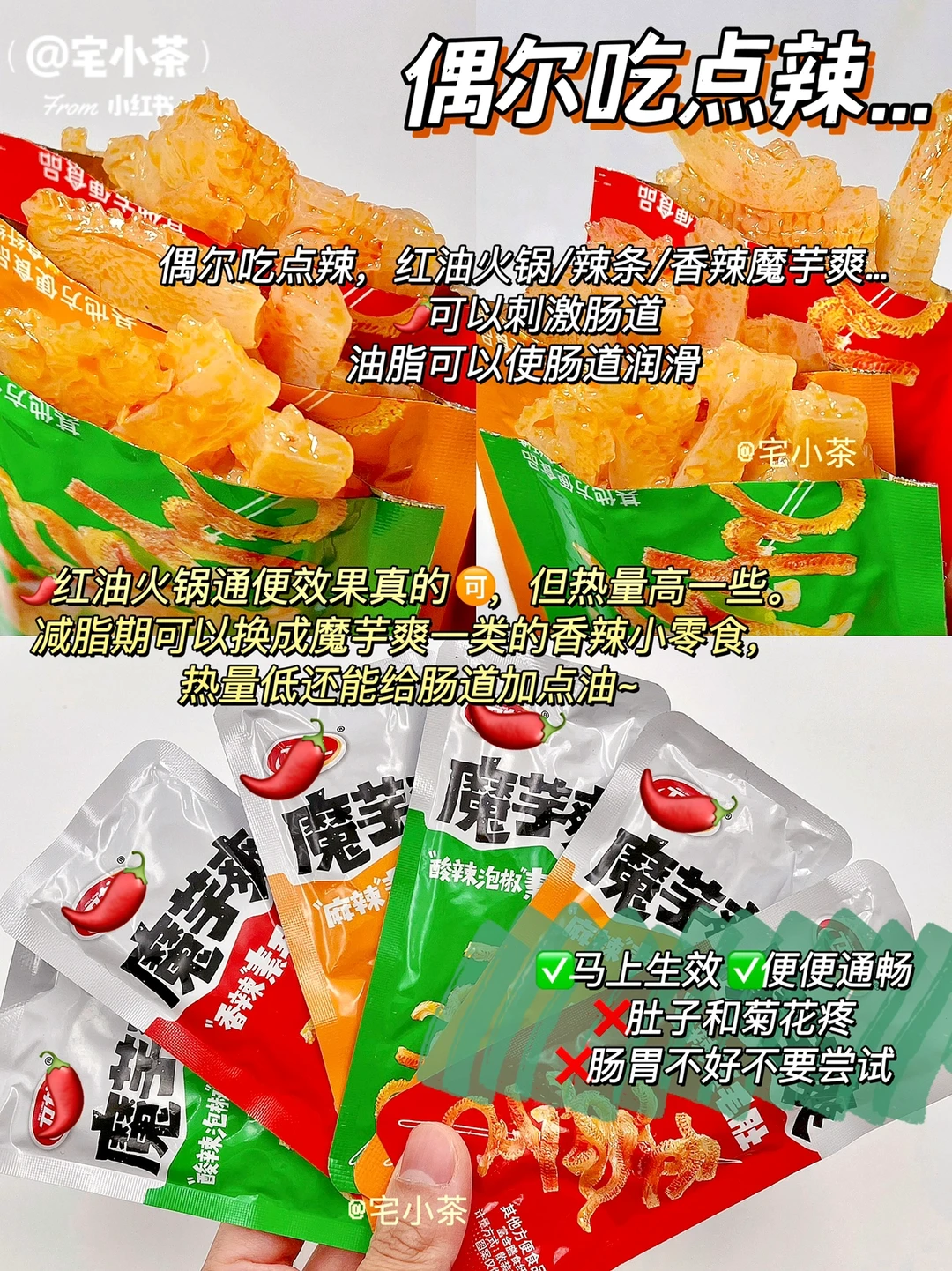 减脂期可以换成魔芋爽一类的香辣小零食,热量低还可以给肠道加点油~