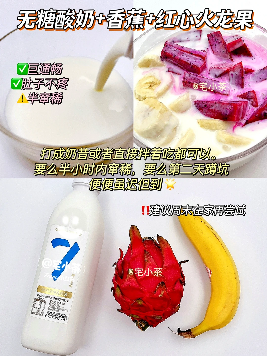 🔸红心火龙果+香蕉+无蔗糖酸奶