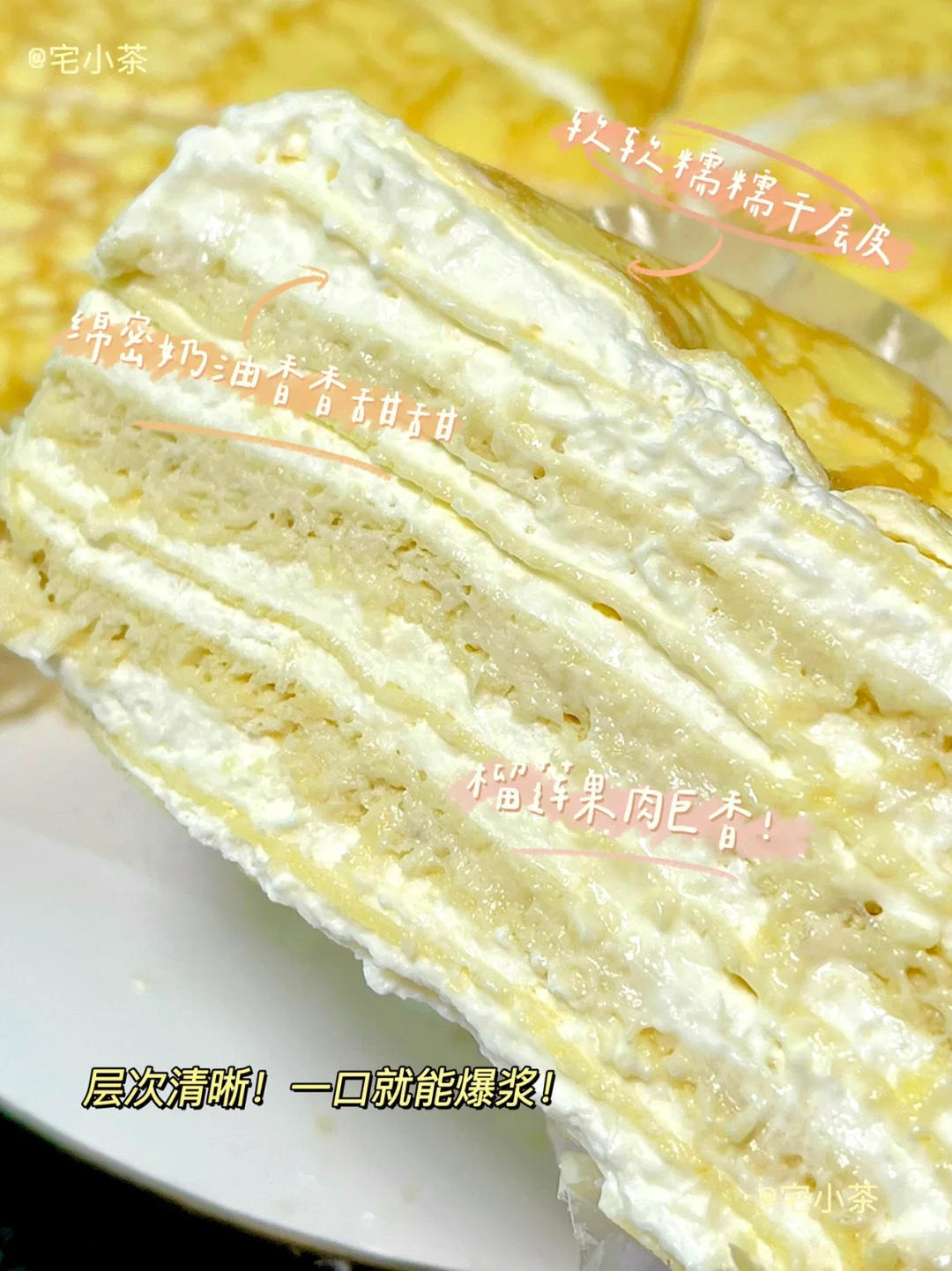 千层蛋糕皮也很薄,稍微一碰就会留指印的那种~酥酥软软的!
