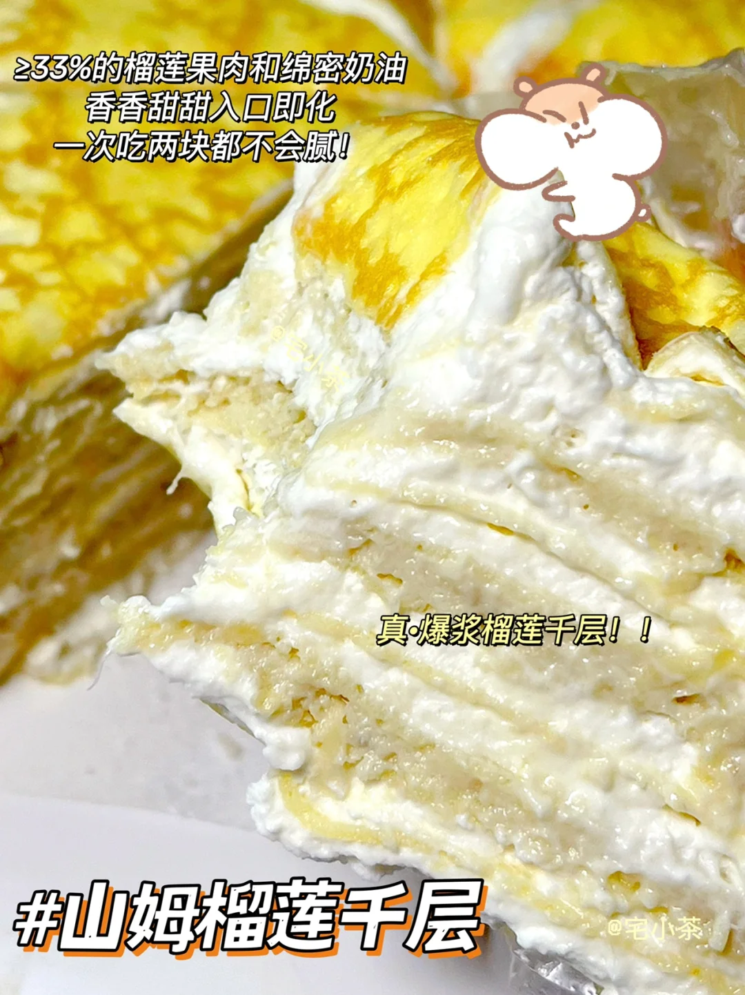 >33%的榴莲果肉和绵密奶油,香香甜甜,入口即化,一次吃两块都不会腻!