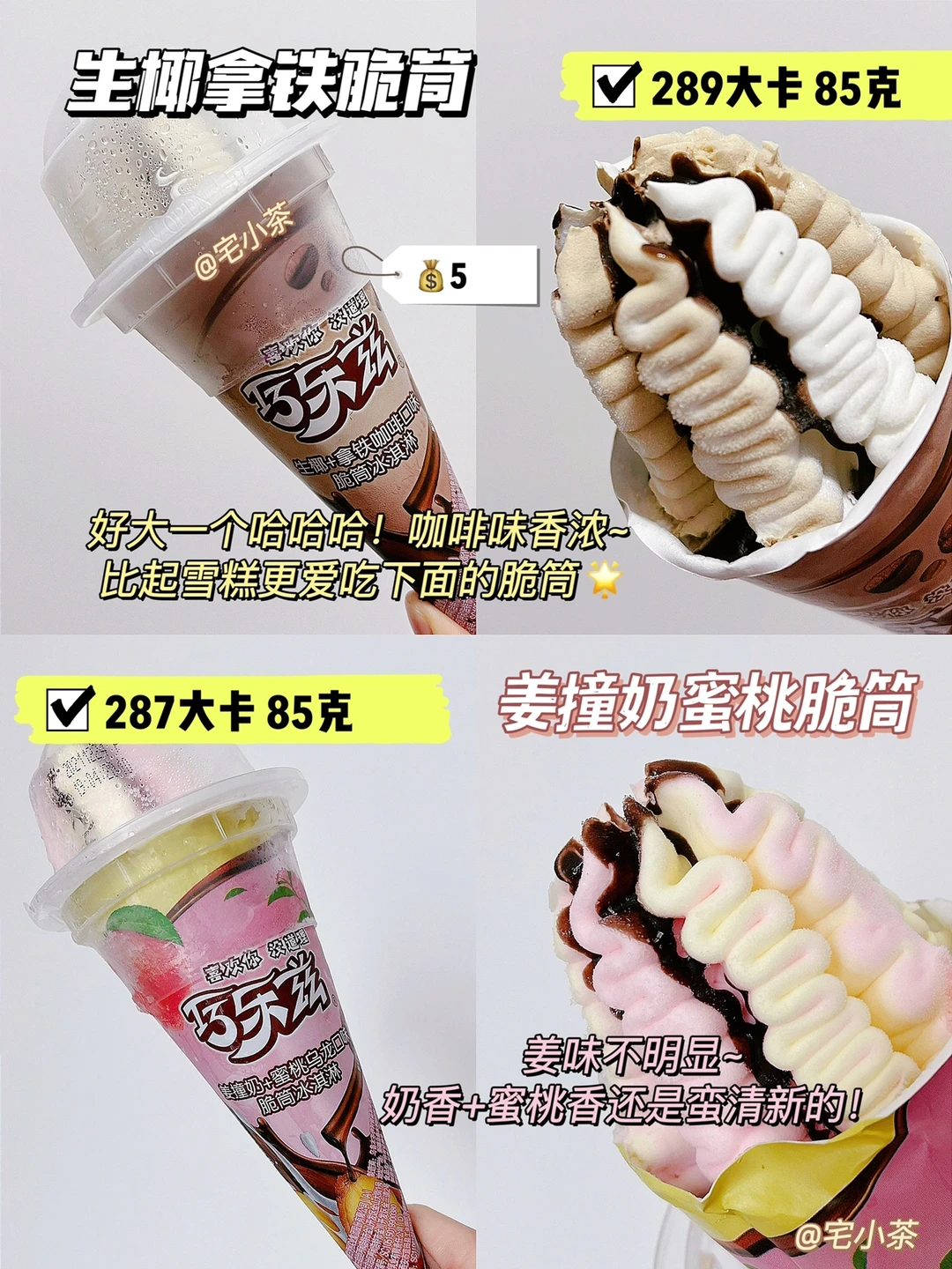 ✅巧乐兹生椰拿铁脆筒 289大卡 85克 💰5
