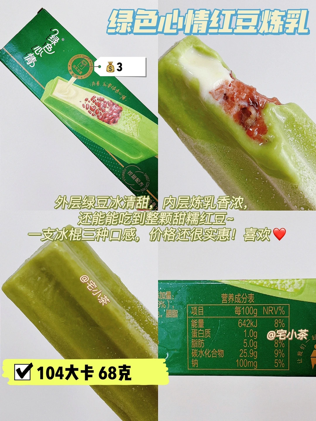 ✅绿色心情红豆炼乳 104大卡 68克 💰3