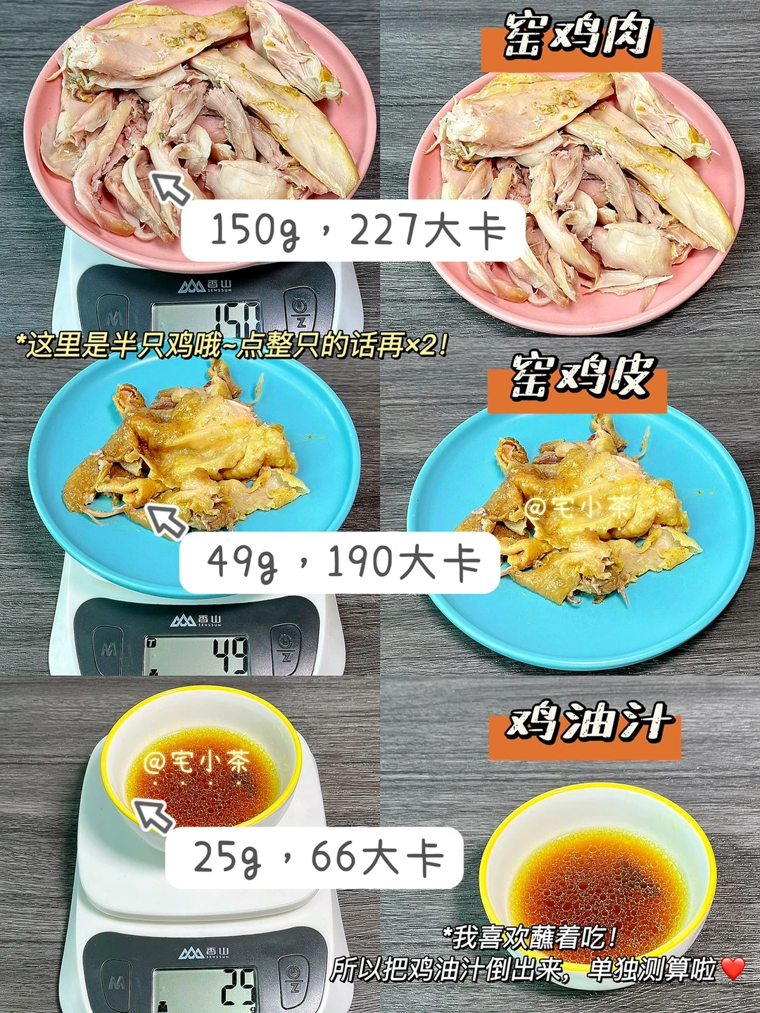 🔸窑鸡(半只):合计483大卡