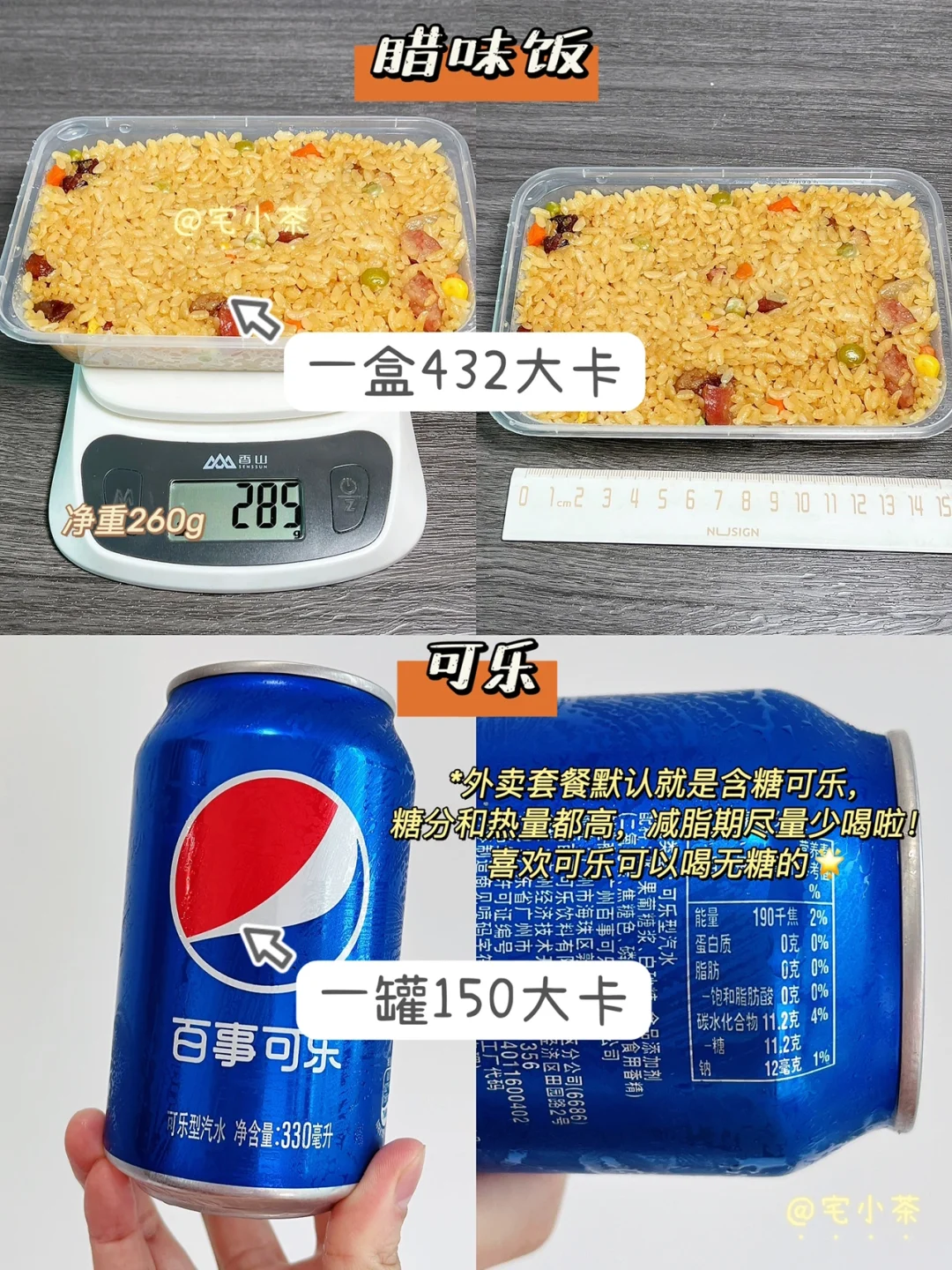 ✔️套餐的腊肉饭和可乐热量也安排上啦!