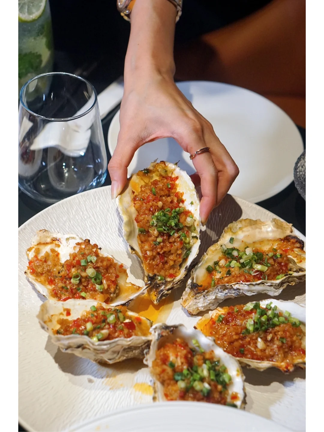 🍤蒜蓉酱焗生蚝:生蚝个头大,肉质肥嫩;