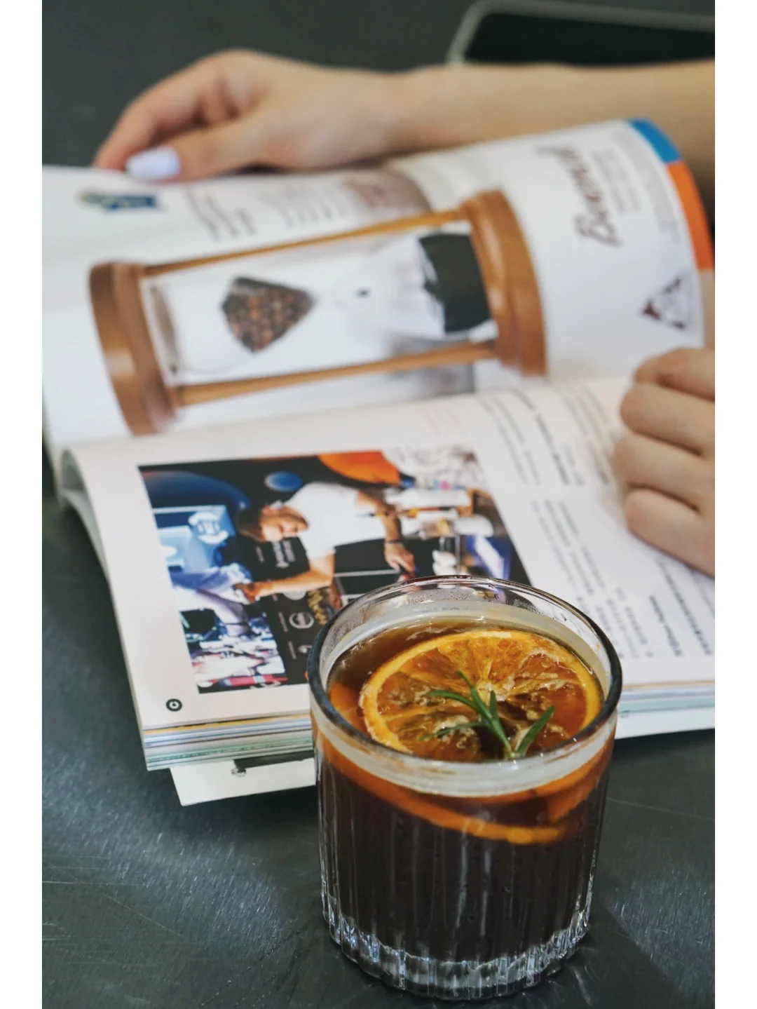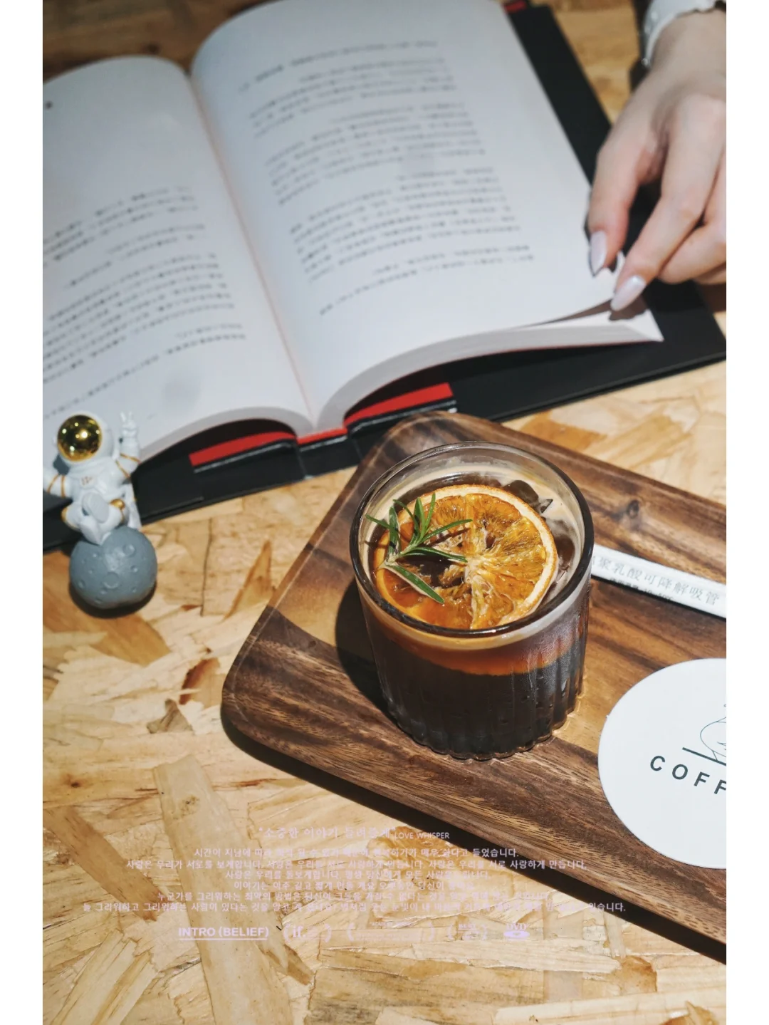 两杯咖啡,一杯冰橙美式,橙子味儿的特调也还在我的点上,一杯黑糖肉桂,因为拍照太久,一杯浓缩成了半杯,所以必须及时喝!!😂😂