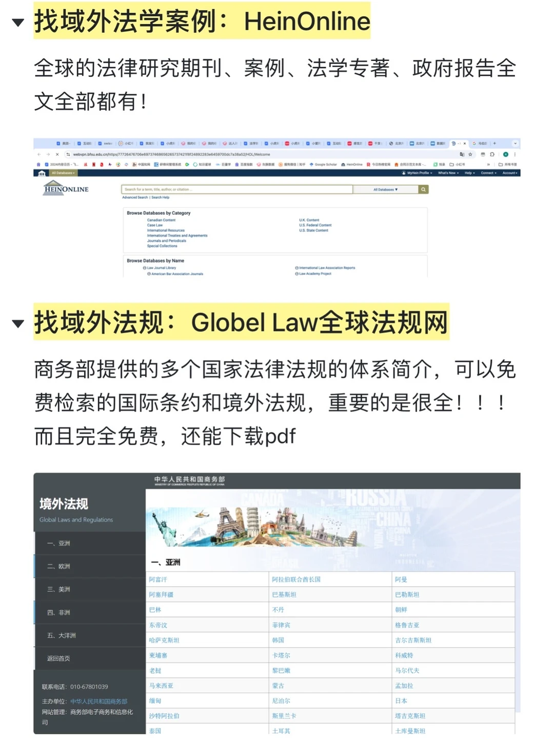 全球的法律研究期刊、案例、法学专著、政府报告全文全部都有!